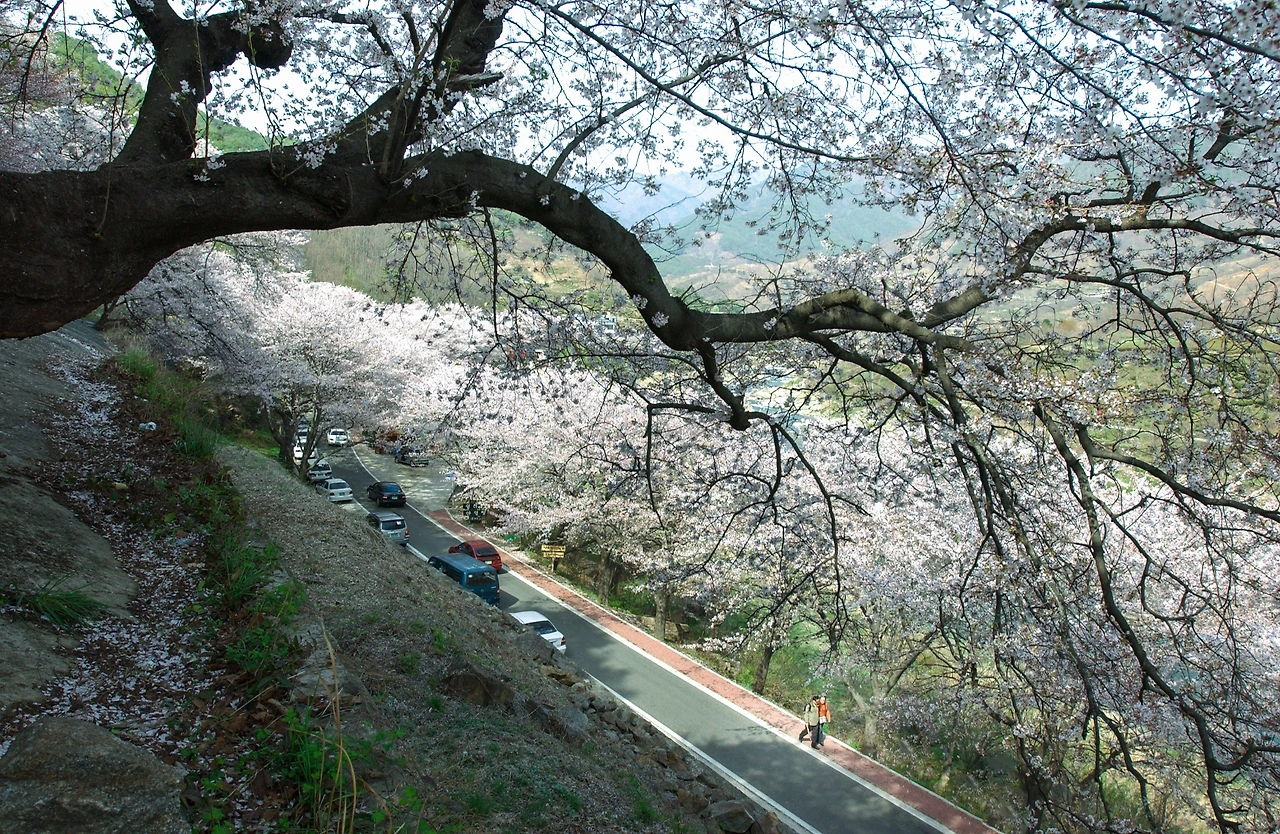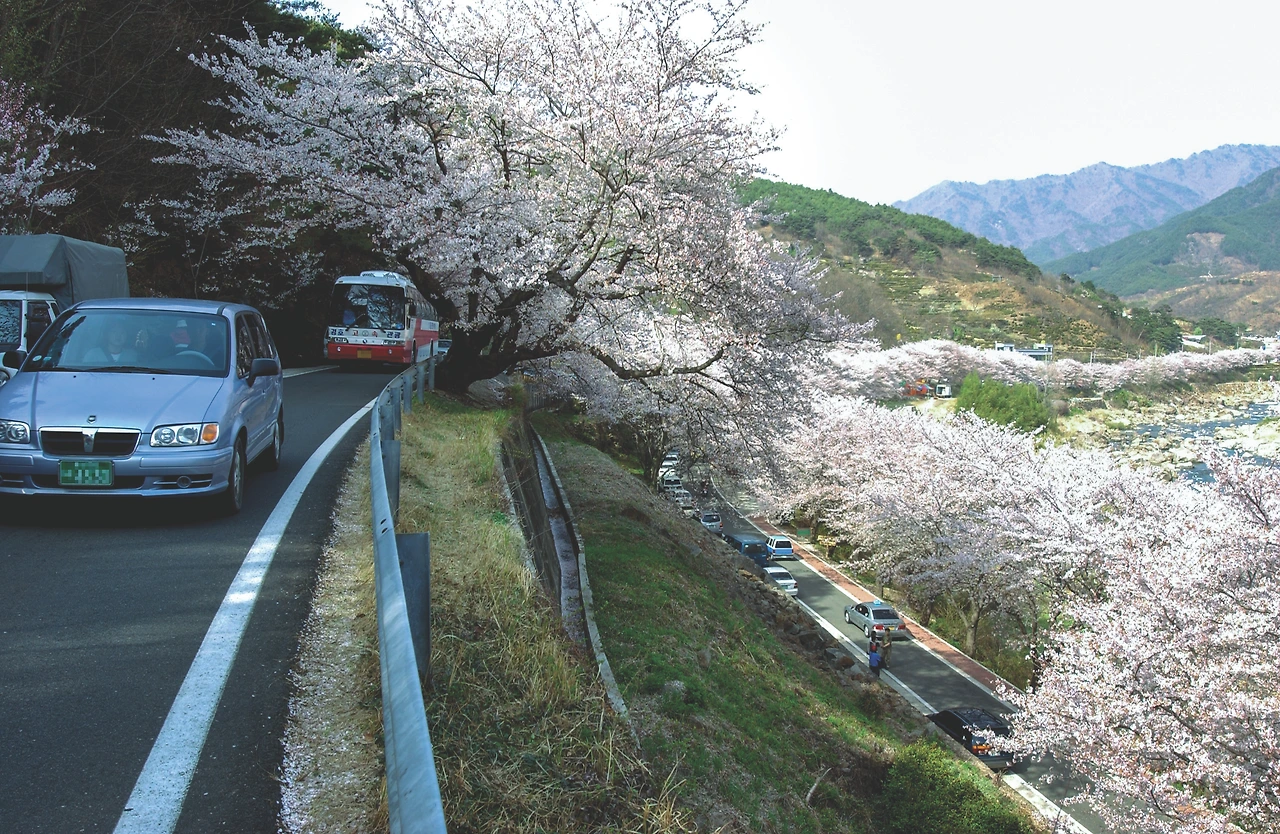도로변에 길게 줄지어 늘어선 벚나무들이 화사하게 꽃을 피운 가지들을 저마다 하늘까지 가릴 정도로 울창하게 내뻗어 천연의 벚꽃터널을 만들어 냄으로써 다른 곳에선 쉽게 보기 힘든 황홀경을 연출하기 때문이다.