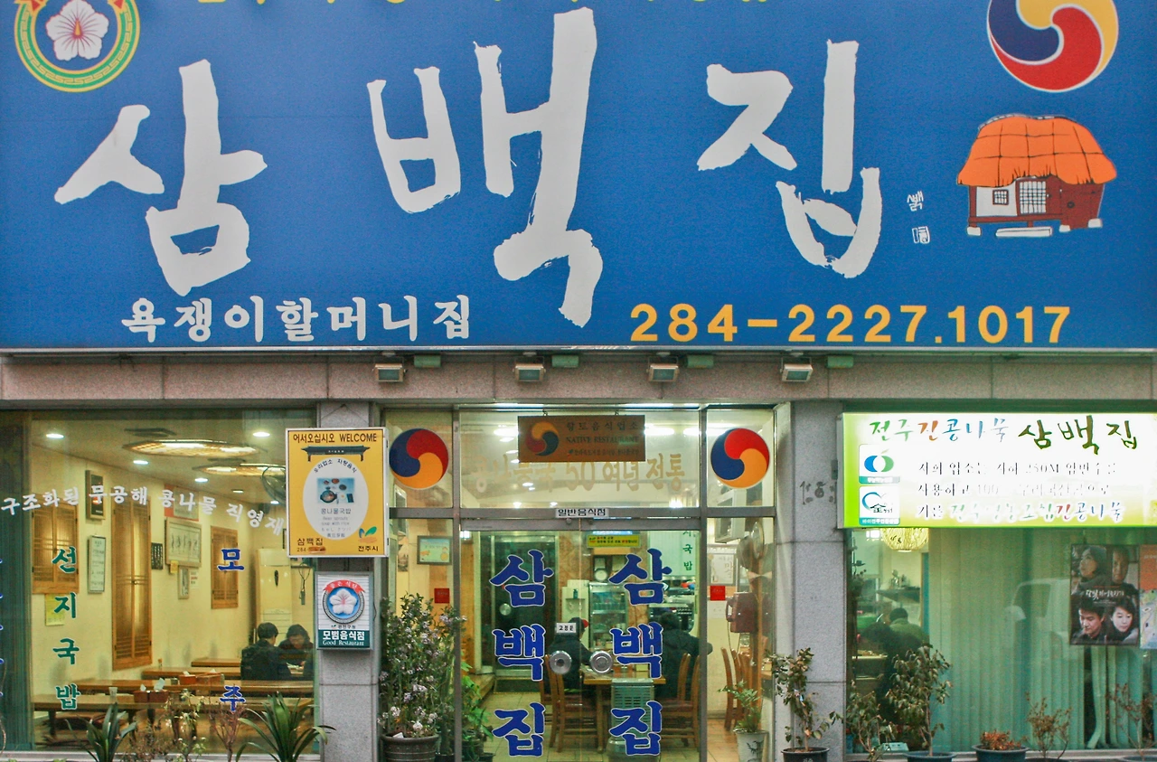 콩나물국밥집 얘기가 나오면 내가 꼭 입에 담는 맛집이 하나 있긴 하다. 인터넷에서 많은 사람들이 추천하는 전주 대표선수급 콩나물국밥 맛집 가운데 하나인 <삼백집>이다. 하지만 내가 그 집을 입에 담는 건 추천하기 위해서는 아니다. 그 집에 얽힌 재밌는 사연이 있기 때문이다.