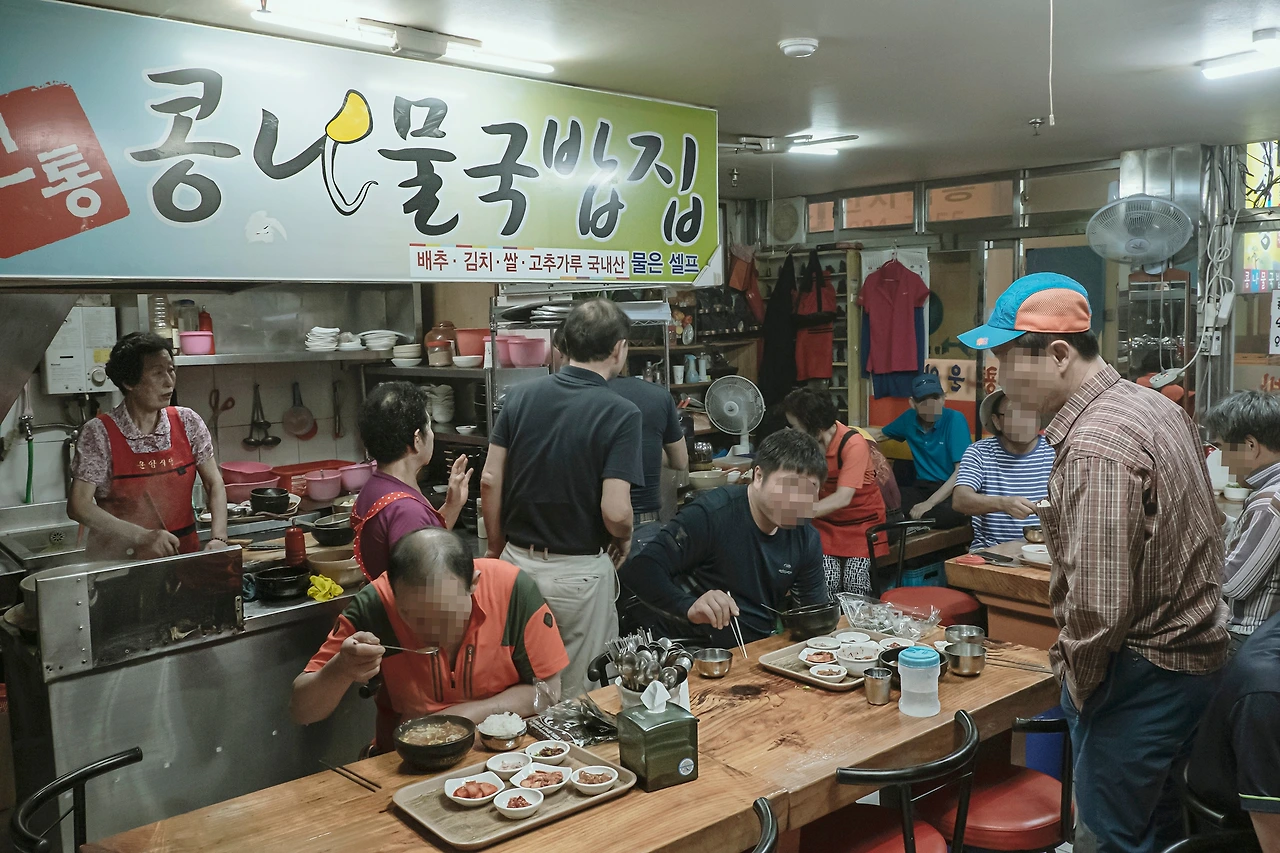 관광객들보단 여전히 인근 시장 상인들이 한 끼 밥을 해결하기 위해 즐겨찾고 있는 시장 국밥집이고, 식당 안에 들어서면 그런 분위기가 고스란히 잘 살아 있는 것도 좋다. 체인점까지 거느린 맛집들과는 달리 1회용 포장김 대신 큰 봉투째 아낌없이 내주는 넉넉한 인심도 여전해서 좋다. 뿐만 아니라 과거 콩나물국밥집들에서 즐겨먹던 기름기 자르르한 큼지막한 대짜 김이 고스란히 살아있는 것도 고맙다. 물론 개인취향에 따라 비위생적이라며 아주 질색할 사람들도 있긴 하겠지만 말이다.