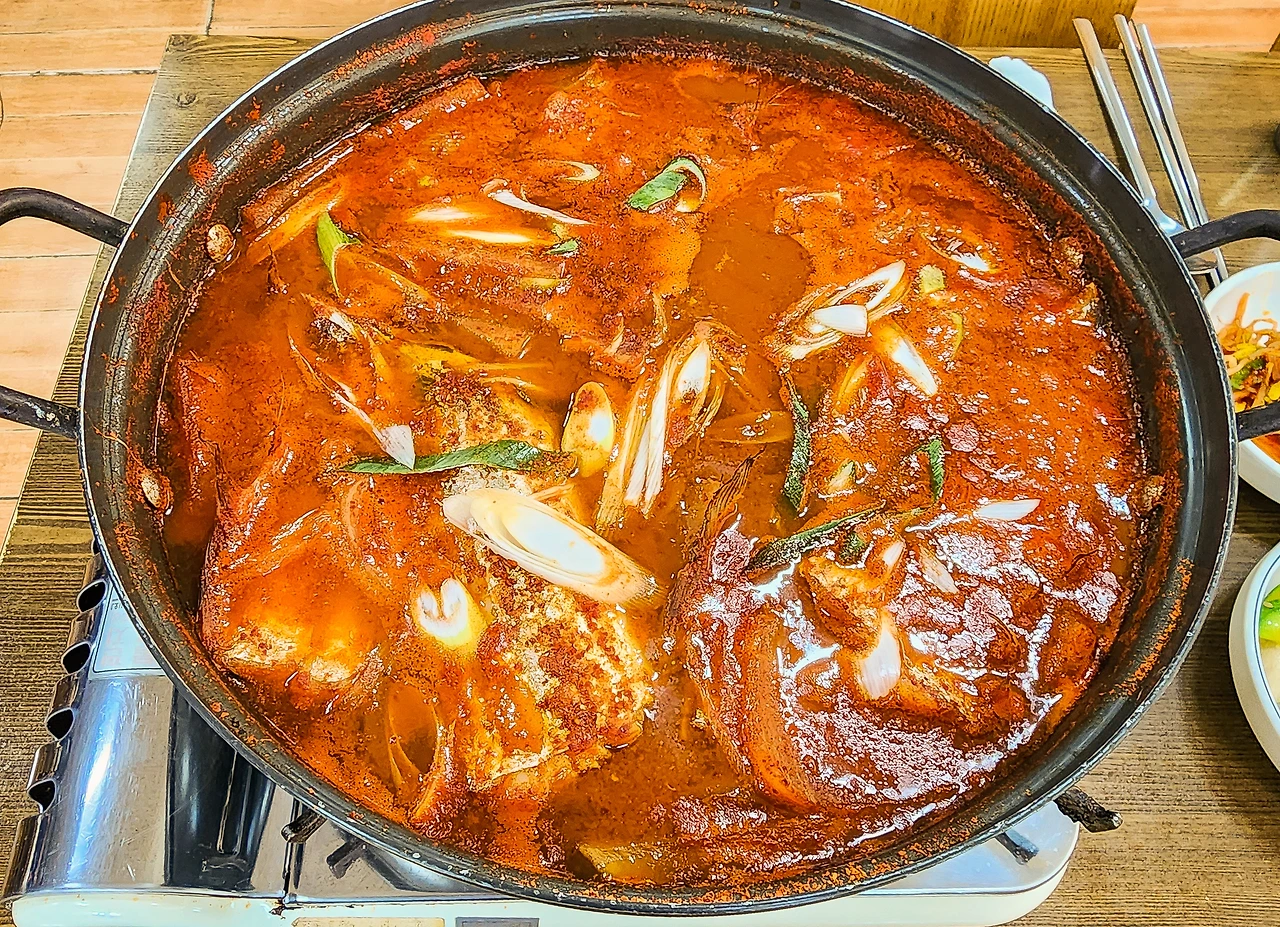 국물 맛도 얼큰하고 시원하니 좋았다. 생선탕 류는 잘못 끓이면 자칫 비린내나 잡내가 나는 경우가 종종 있는데, 그런 게 전혀 느껴지지 않을 만큼 깔끔한 맛이었다. 갈치고 야채고 다 빼고 그 국물만 있어도 공기밥 한두 그릇 쯤은 순삭할 수 있을 거 같다는 생각이 들 정도였다.