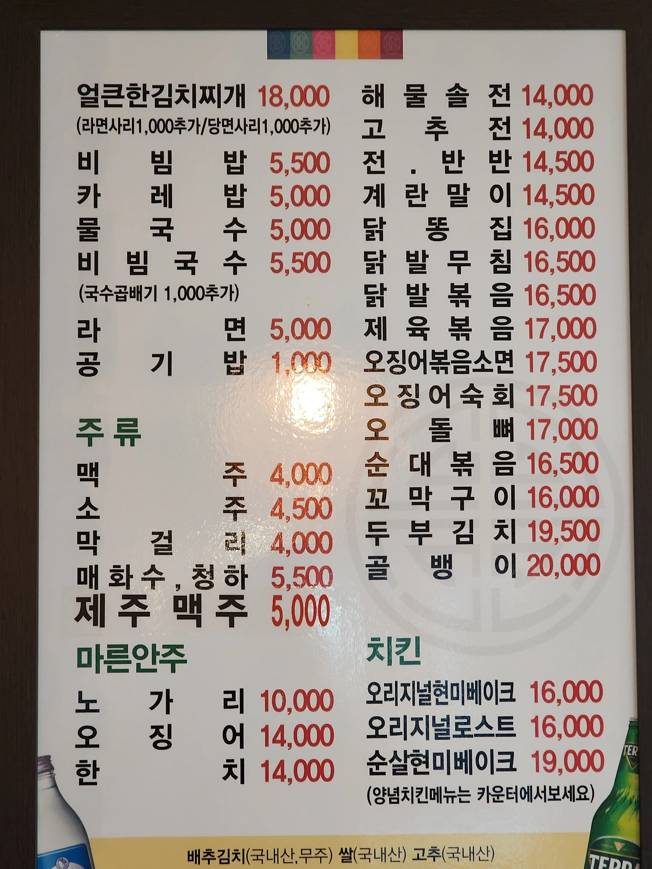 시그니처 메뉴는 김치찌개라는 사람도 있고, 치킨 혹은 반반전이라는 사람도 있고 사람마다 다 제 각각이라 딱히 이거라 말하긴 좀 힘든 측면이 있다. 평균적으로 맛이 훌륭한 편이니 그냥 각자 자기가 좋아하는 메뉴를 시켜 먹으면 좋을 거다.