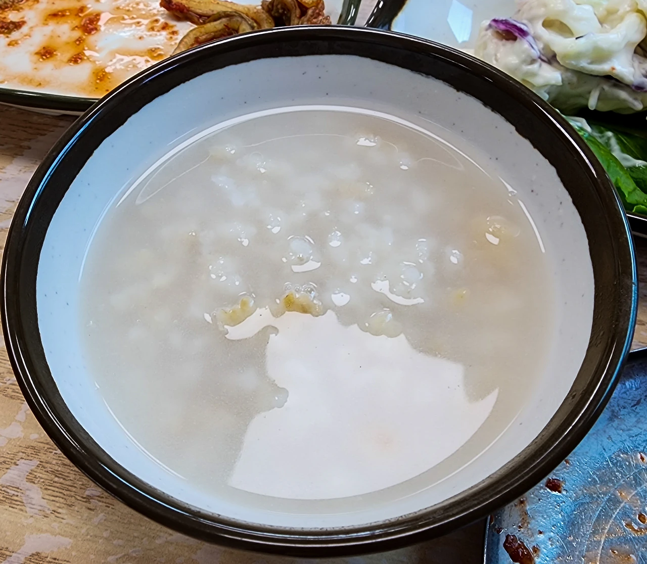 더 큰 문제는 그렇게 평소 식사량을 크게 넘겨 과식을 한 상황에서 후식으로 <존맛> 누룽지가 또 나온다는 거다. 내 경우 배가 더부룩할 정도로 부른 걸 아주 매우 많이 싫어하는 터라 평소 같으면 안 먹는게 정상인데, 다른 곳에선 쉽게 접하기 힘든 고소한 맛을 가진 누룽지라 또 꾸역꾸역 먹게 된다. "오 마이 갓!"이다.
