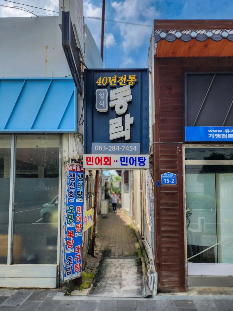 웨딩 관련 가게들이 많아 일명 '웨리단길'이라 불리는 전주 전라감영길에 가면 유서 깊은 유명 맛집들이 곳곳에 숨어있다. 전라감영5길 15-7번지 허름한 골목 속에 숨어있는 노포 <동락일식>도 그 대표선수 가운데 하나이다.