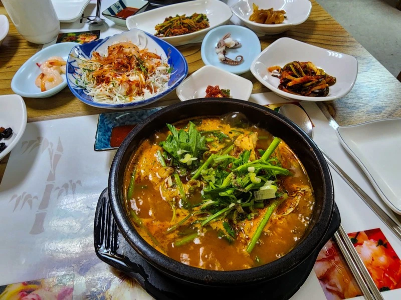 매운탕에서 가장 중요한 게 국물 맛인데, 동락일식 민어탕 국물은 한 마디로 <존맛>이다. 매콤하고 시원하면서 달다는 느낌마저 준다. 매운탕에서 달다는 느낌을 받는 건 흔치 않은 일인데, 그 어려운 걸 해내고야 마는 게 동락일식의 매력이다. 40년 전통이라는 간판이 부끄럽지 않은 맛이고, 나이 지긋한 어르신들이 수십 년 간 꾸준히 단골로 찾아올 수밖에 없게 만드는 마법 같은 맛이다.