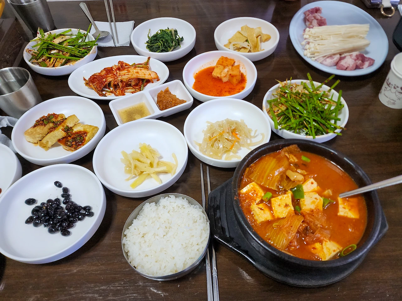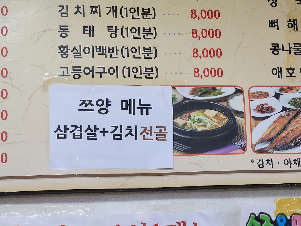 쯔양의 먹방 때문에 그 먼곳까지 간 만큼 우리는 '쯔양 메뉴'인 삼겹살과 김치찌개를 주문했다. 아마 그녀 유튜브를 보고 이곳 금성식당을 찾은 많은 여행객들 역시 그 메뉴를 찾았을 테고, 그런 주문 패턴을 감안해 식당 사장님 역시 '쯔양 메뉴'라는 신메뉴를 선보였을 거였다.
