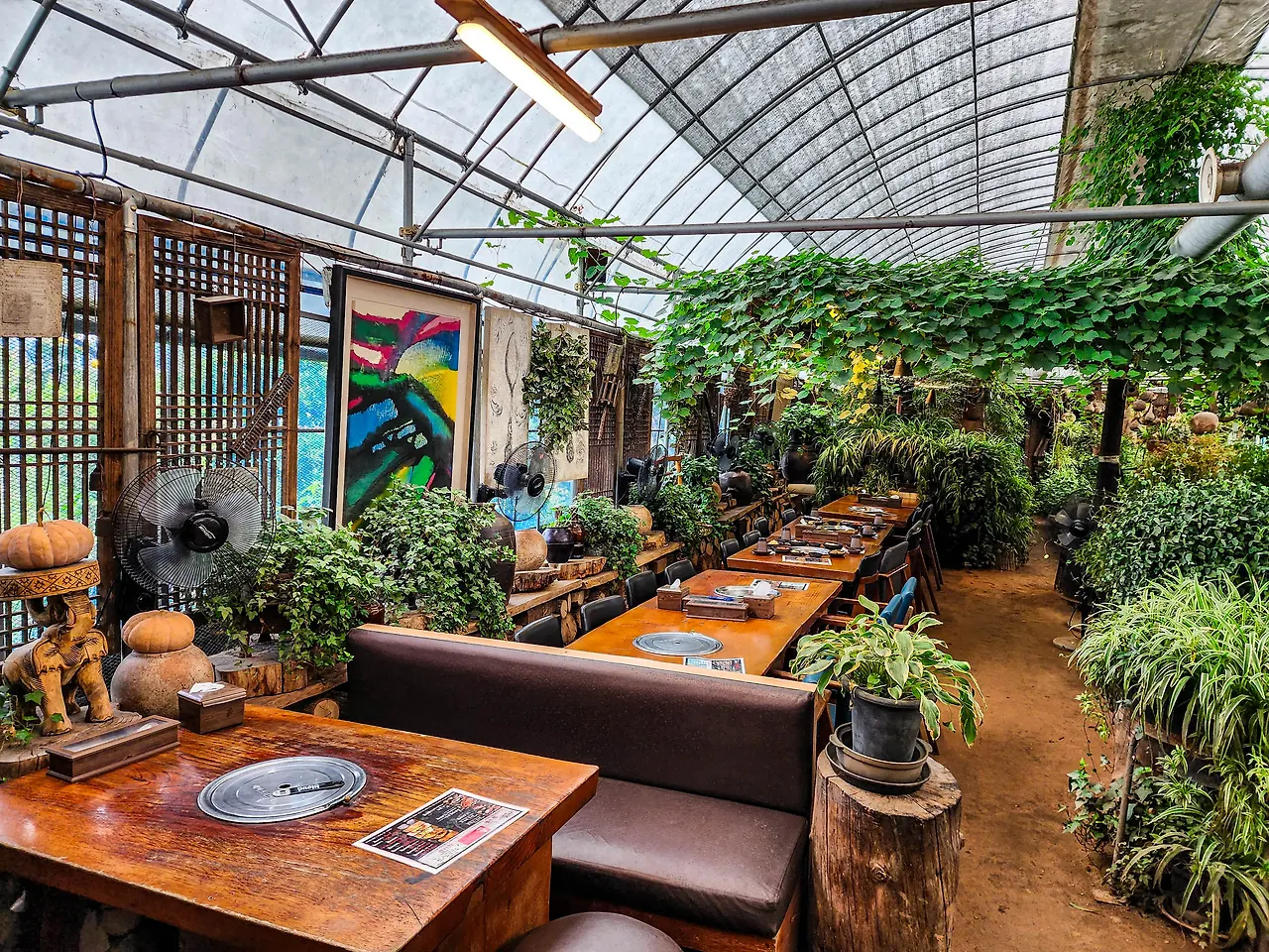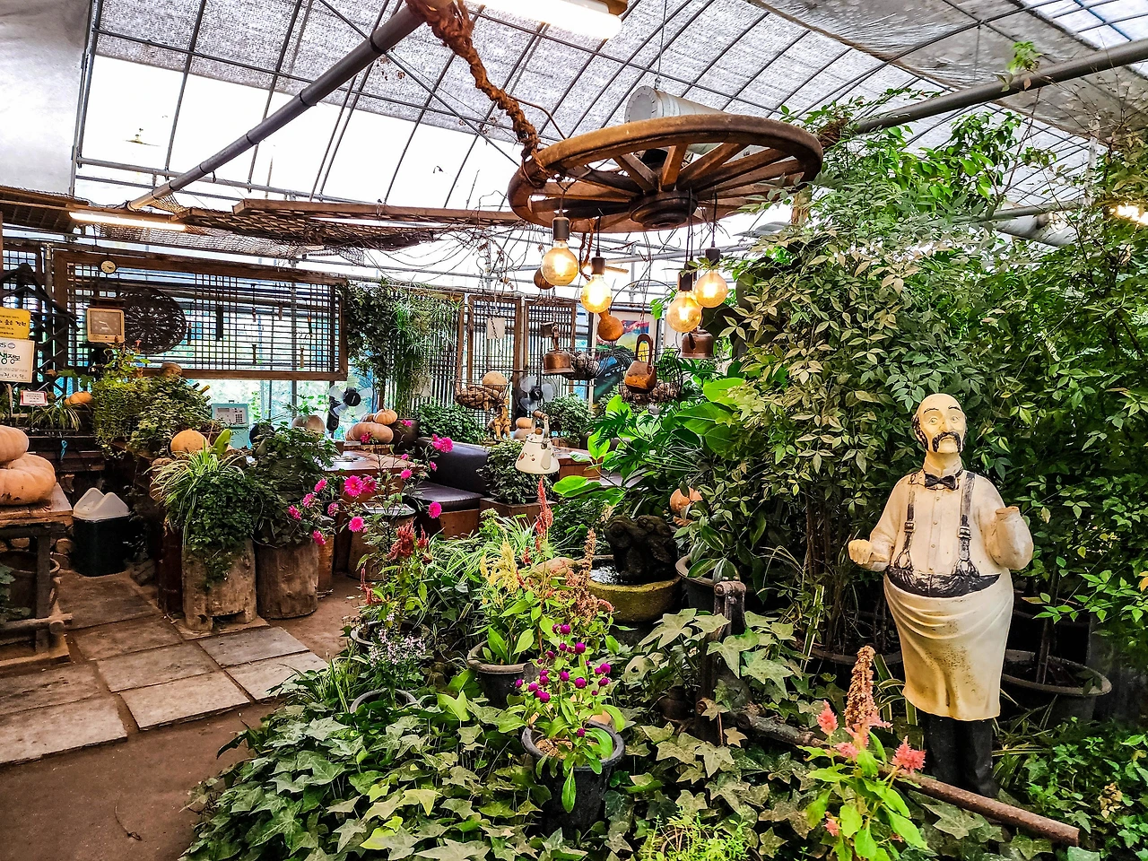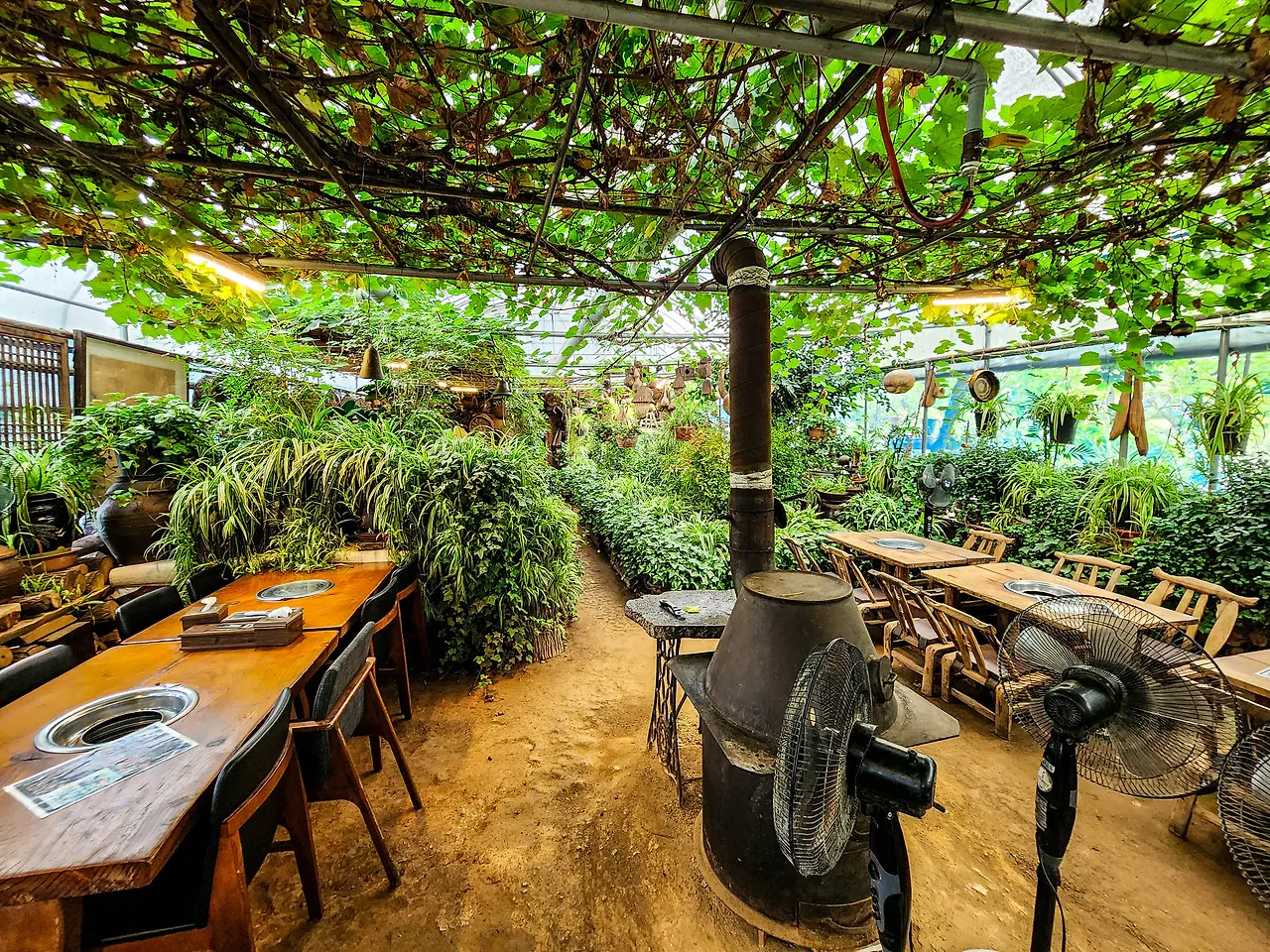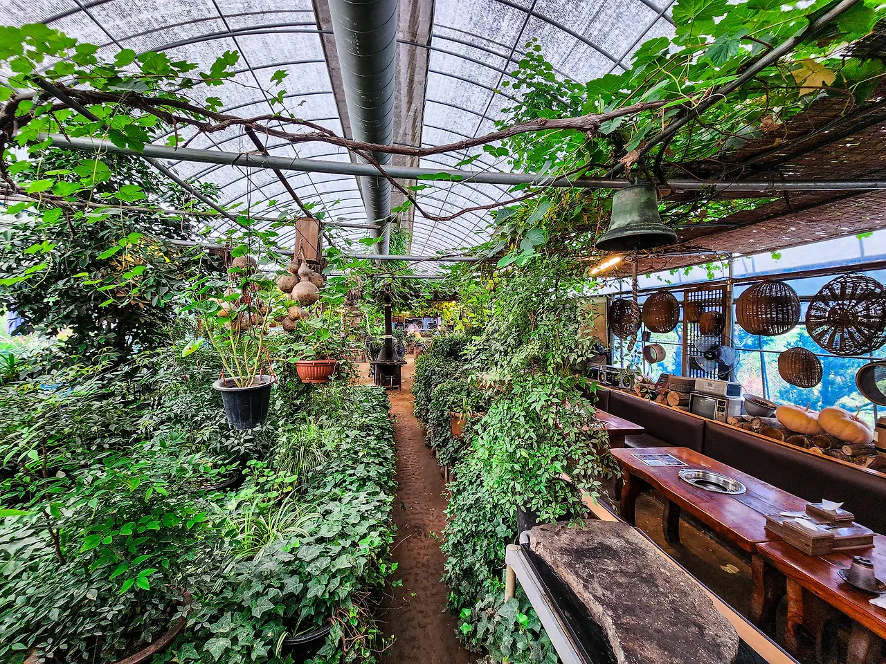 전미원이 이색맛집으로 손꼽히는 이유는 독특한 식당 컨셉 때문이다. 비닐하우스를 개조해 만든 이곳은 안팎이 다 화단으로 둘러싸여 있어 마치 숲속 정원에 들어와 식사를 하는 듯한 착각을 불러 일으킬 정도다.