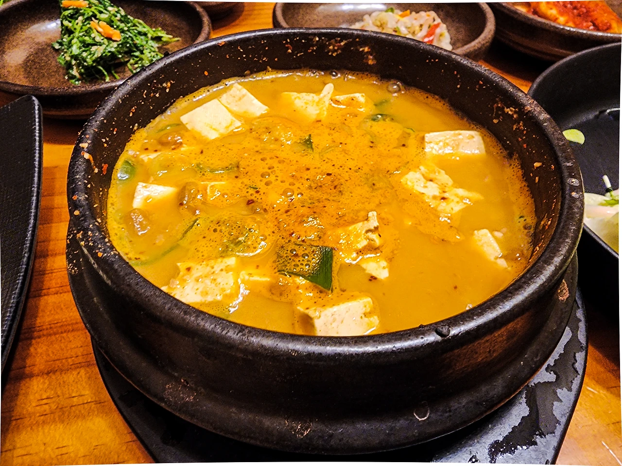 특히 메인 요리인 청국장은 아내와 나 두 사람 머리에 우리 부부가 가장 최애하는 청국장 맛집인 전주 '옴팡집'을 떠올리게 만들었다. 이제껏 거기보다 맛있는 청국장 집은 없었는데, 처음으로 우리의 최애 청국장 맛집 옴팡집과 어깨를 견줄만한 곳을 발견한 거다.