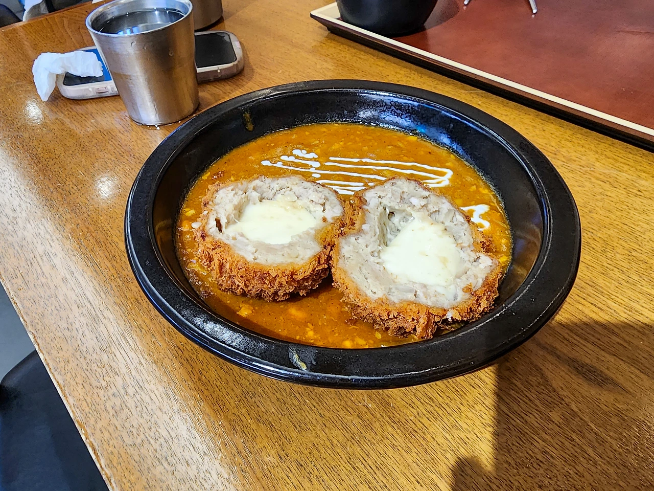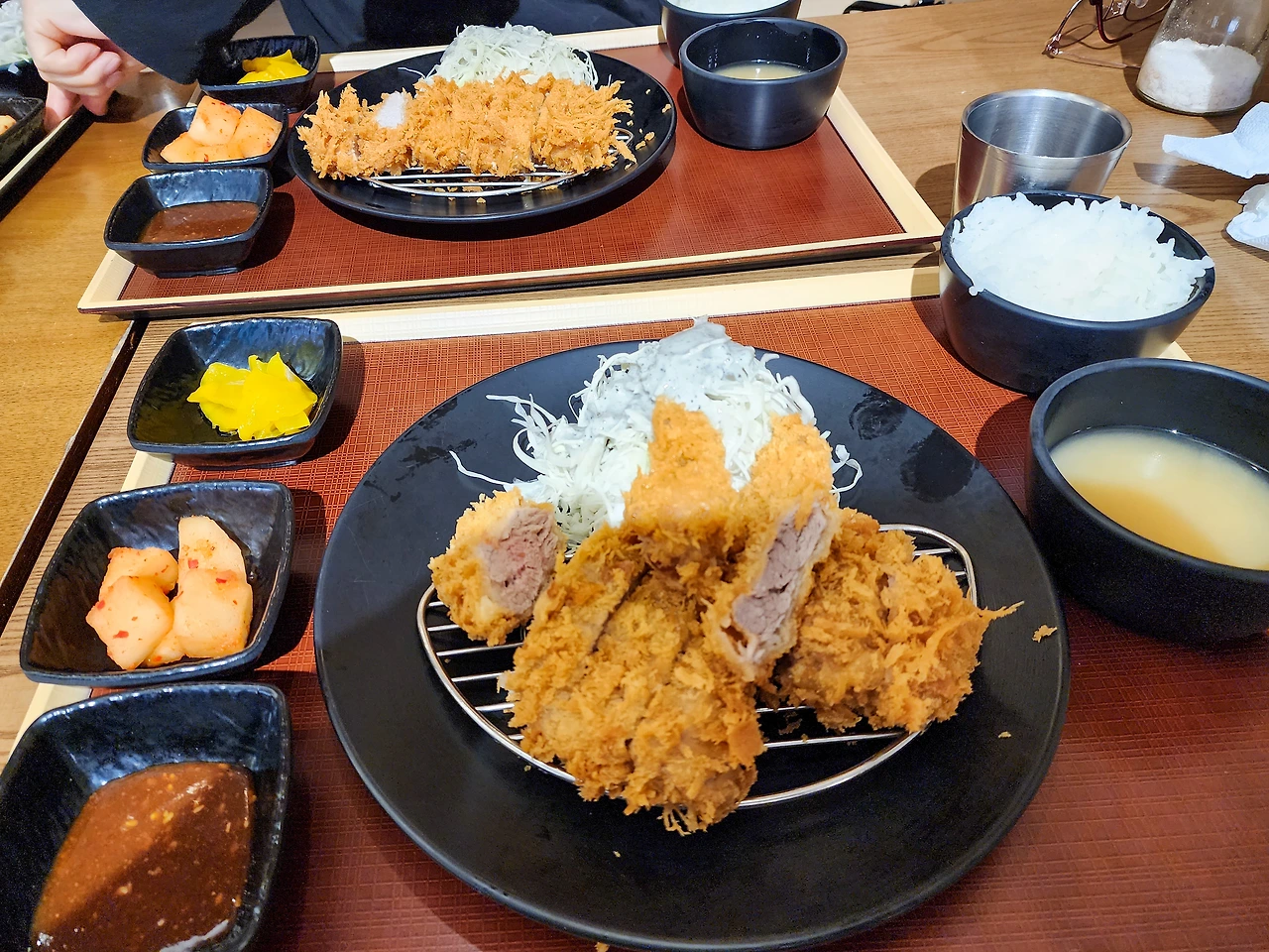 어쨌거나 백프로 만족스럽진 못한 상황이었으되 그 안에서나마 최대한 다양한 맛을 즐기기 위해 우리 가족은 식구수대로 등심돈까스와 안심돈까스, 모짜치즈볼카츠 카레를 각각 하나씩 주문했다. 그리고 얼마간 기다리자 마침내, 드디어 오매불망 영접하기를 앙망해 온 연돈 돈까스님께서 우리 앞에 그 모습을 나타내셨다.