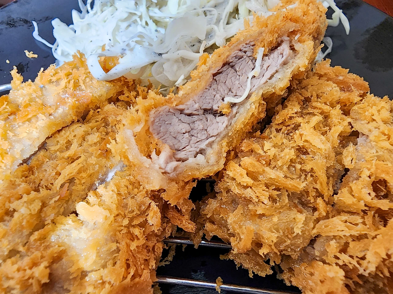상상회로 속에선 무슨 요리 애니메이션의 한 장면처럼 돈까스 접시 위에서 찬란한 후광이라도 비출 걸로 기대하기도 했었지만, 그런 일은 결코 일어나지 않았다. TV와 인터넷 등을 통해 익해 봐왔던 두툼한 돈까스 위로 예쁘게 잘 튀겨진 튀김옷이 입혀진 먹음직스런 한 접시가 고소한 향기를 날리며 '어서 날 잡아먹어랏!' 하고 유혹하고 있었을뿐.