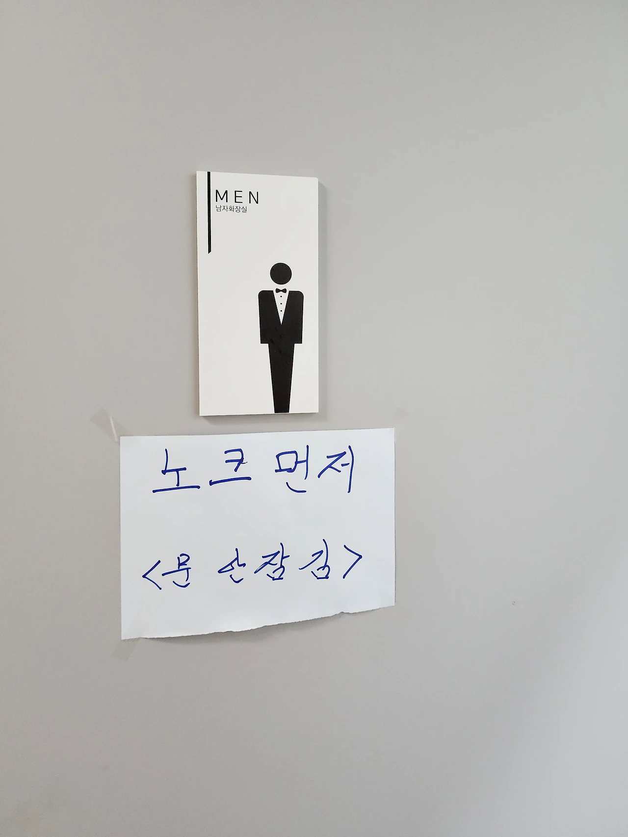 다른 한 가지는 남자화장실 입구에 붙어있던 어이없는 안내 문구였다. <노크 먼저, 문 안잠김>이라 손글씨로 붙여놓은 게 그것인데, 화장실 안에 들어선 순간 나는 실소를 금할 수가 없었다. 소변기 없이 좌식 양변기 하나만 덜렁 놓여있었는데, 문제는 그 좌변기와 문 사이 거리가 1.5~2미터는 돼보였다는 거다. 앉아서 큰일이라도 보고 있는 상황이라면 누군가 밖에서 노크했을 때 뛰어가서 마주 노크를 해야 할 판이었다. 이용하는 고객 입장에 서서 동선을 조금만 생각했다면 그런 어이없고 무책임한 안내 문구는 안 나왔을 거라는 아쉬운 마음이 일었다.