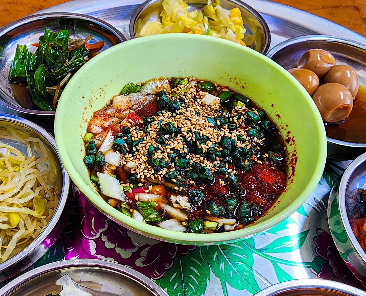 아닌게 아니라 임실 청웅식당에서 마주한 다슬기양념장 비빔밥은 입맛을 확 사로잡는 마법같은 매력이 있었다. 다슬기와 양파, 고춧가루, 파, 참깨, 간장 등을 버무려 만든 양념장이 그 중심 역할을 하는데, 따뜻한 흰 쌀밥에 비벼 한 입 먹는 순간 입 안에서 아주 난리가 나는 느낌이 들었다.