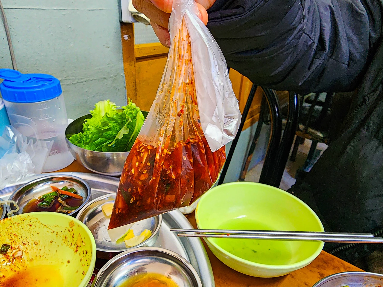 이유는 물론 너무 맛있어서다. 양념장에 들어간 재료들이란 게 대부분 우리가 그 맛을 익히 알고 있는 것들임에도 불구하고 도대체 어디서 그런 마법 같은 맛이 나는 건지 신기할 정도였다. <존맛> 정도로는 표현이 많이 부족하고, <대존맛> 혹은 그 이상이라고 해야 정확할 거란 생각이 들었다.
