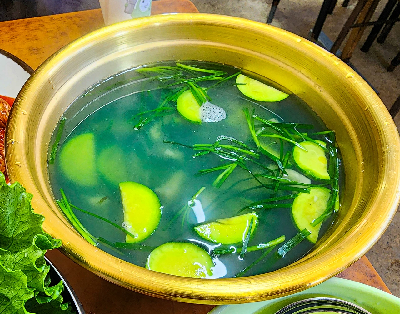 잠시 얘기가 곁길로 샜는데, 다시 본론으로 돌아가서 청웅식당 시그니처 메뉴는 다슬기탕 정식이다. 앞서 설명한 다슬기양념장에 다슬기 수제비가 곁들여져 나오는데, 그 손 많이 가는 다슬기를 아낌없이, 사정없이 때려넣은 덕분에 맛은 물론 영양가 만점인 건강식을 즐길 수 있다.