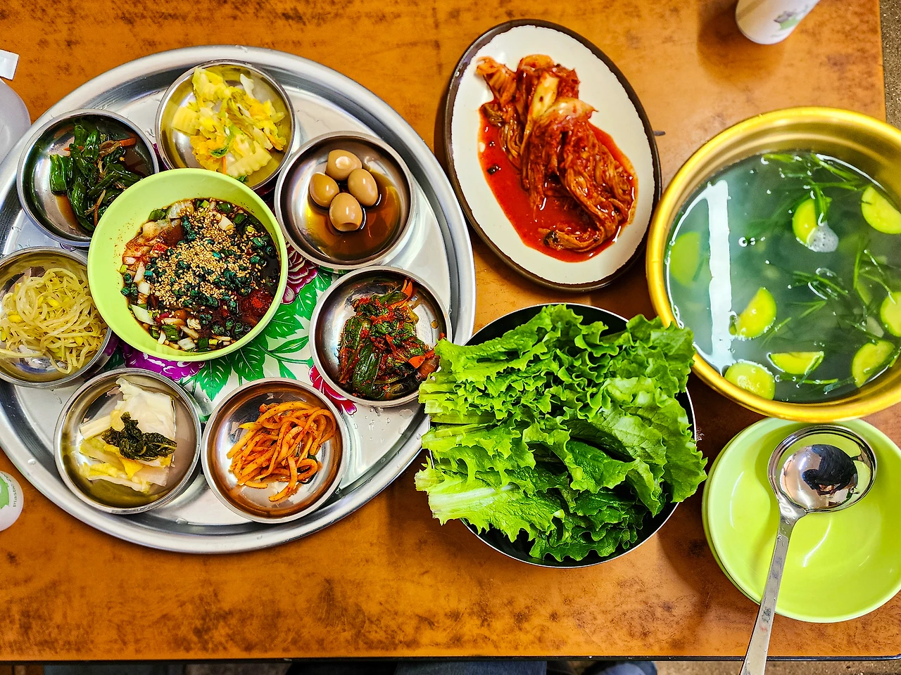여기에 어찌나 싱싱해 보이던지 곧 밭으로 걸어 돌아갈 것 같은 상추쌈을 곁들이고, 그 하나하나에서 깊은 손맛이 느껴지는 김치 등 밑반찬들을 함께 먹으면 입 안에서 즐거움이 폭발하는 듯한 신기한 경험을 맛볼 수 있다.