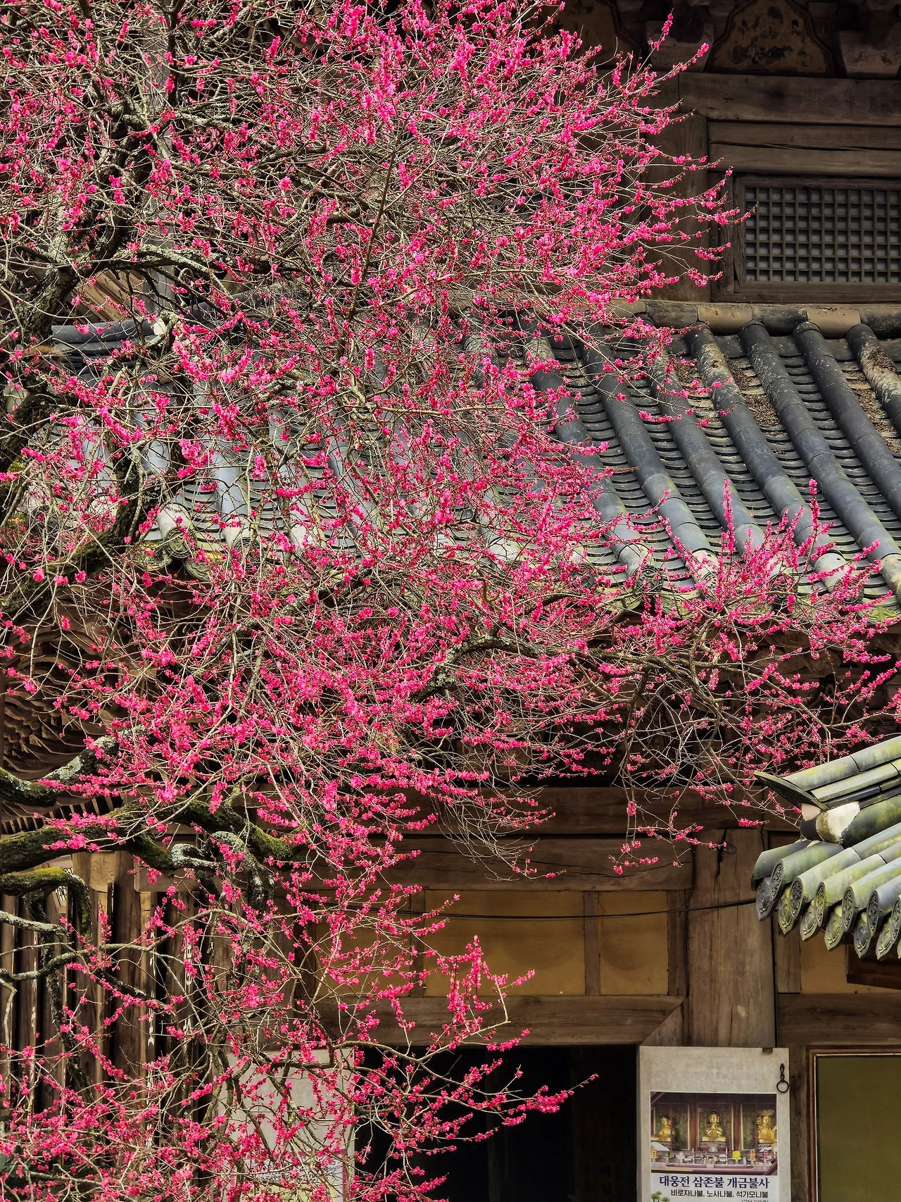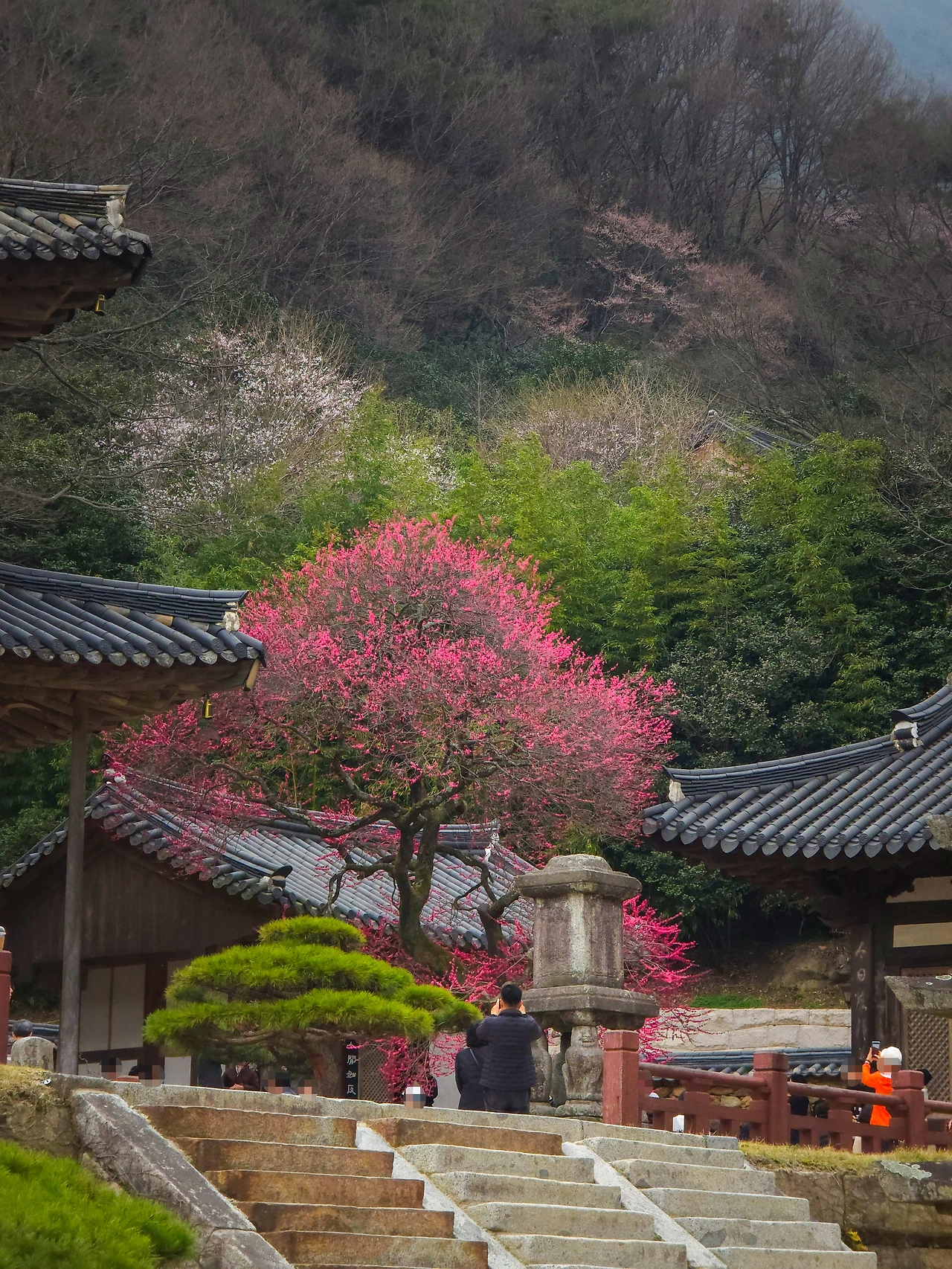 알고 보니 올해 1월 천연기념물로 지정된 화엄사 홍매화 때문이었다. 순천 선암사 선암매, 장성 백양사 고불매와 더불어 우리나라 3대 매화로, 혹은 강릉 오죽헌 율곡매까지 포함해 대한민국 4대 매화로 손꼽히는 화엄매가 마침 만개해 있었던 거였다.