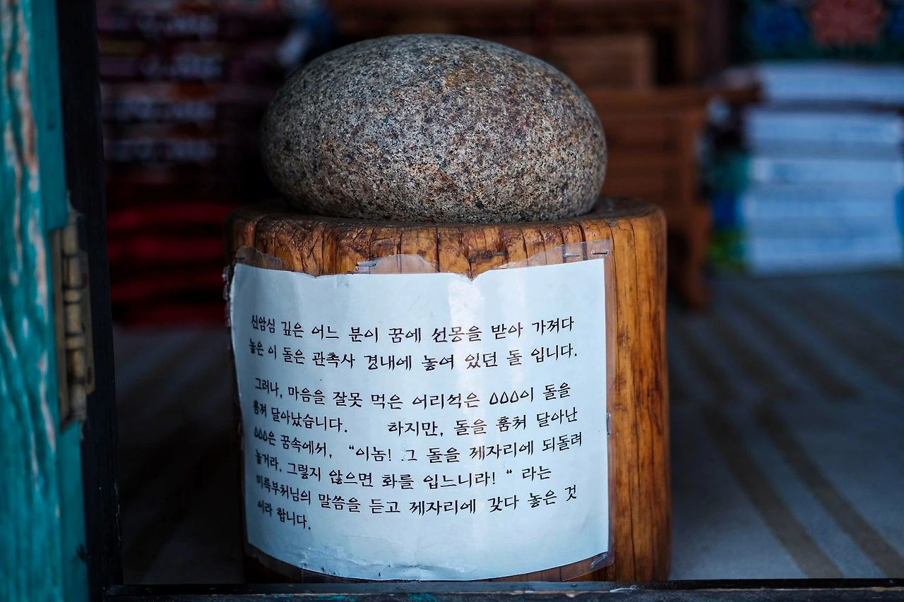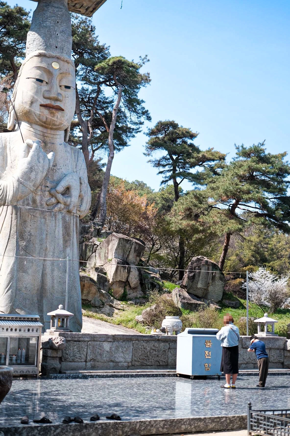 각설하고 은진미륵 불상에 대해서만 너무 방점을 찍은 감이 있는데 논산 관촉사에는 그밖에도 주목할 만한 볼거리들이 많이 있다. 계단을 타고 오르면 절집을 한눈에 담아볼 수 있는 삼성각을 비롯해 사명각, 현충각 등 역사를 간직한 전각들도 그렇고, 1963년 보물로 지정된 관촉사 석등, 1976년 충청남도 유형문화재로 지정된 배례석 등도 눈에 담아둘만 하다.