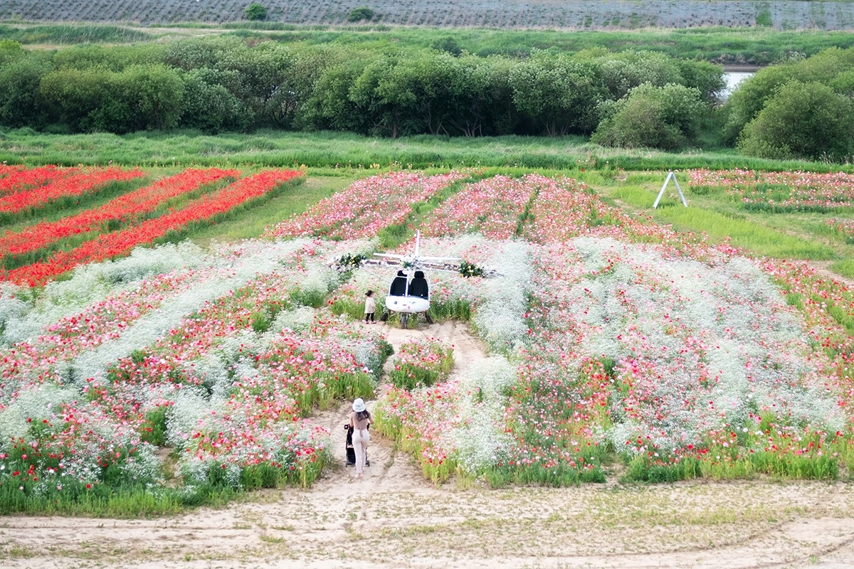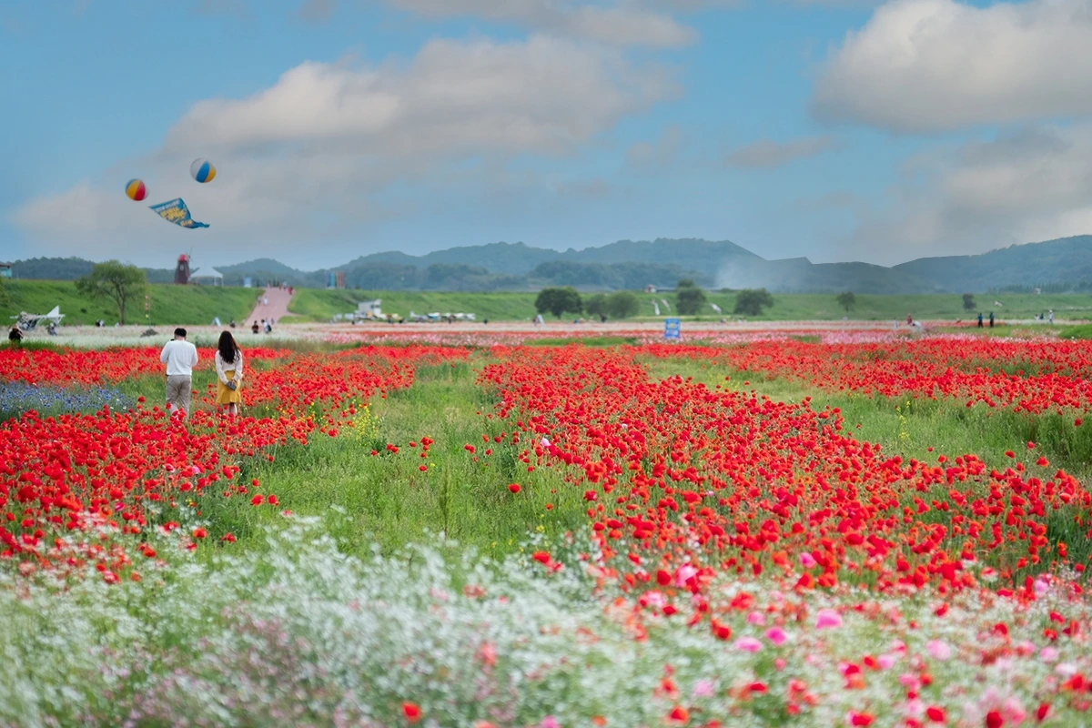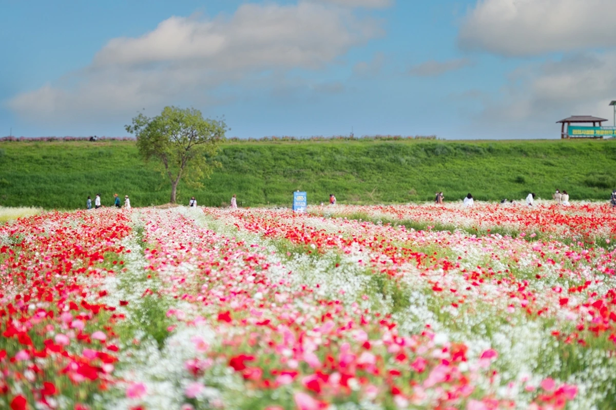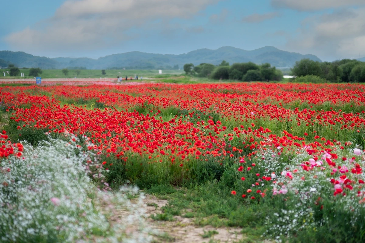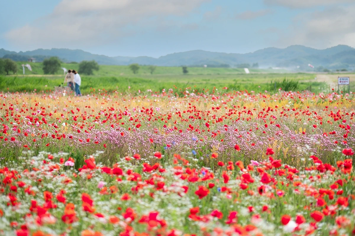 관할 지자체인 함안군에서는 2008년부터 '10리 둑방 테마관광사업'을 시작해 악양둑방 각 구간별로 야생화를 심기 시작했으며, 곳곳에 주제공간과 체험장, 편의시설 등을 설치해 관광객 유치를 위한 노력을 전개하고 있단다. 그 결과가 요즘 같은 봄철이면 들판 가득 피어나 꽃물결을 이루고 있는 양귀비꽃과 안개꽃, 수레국화 등이 빚어내는 환상적인 풍경이다.