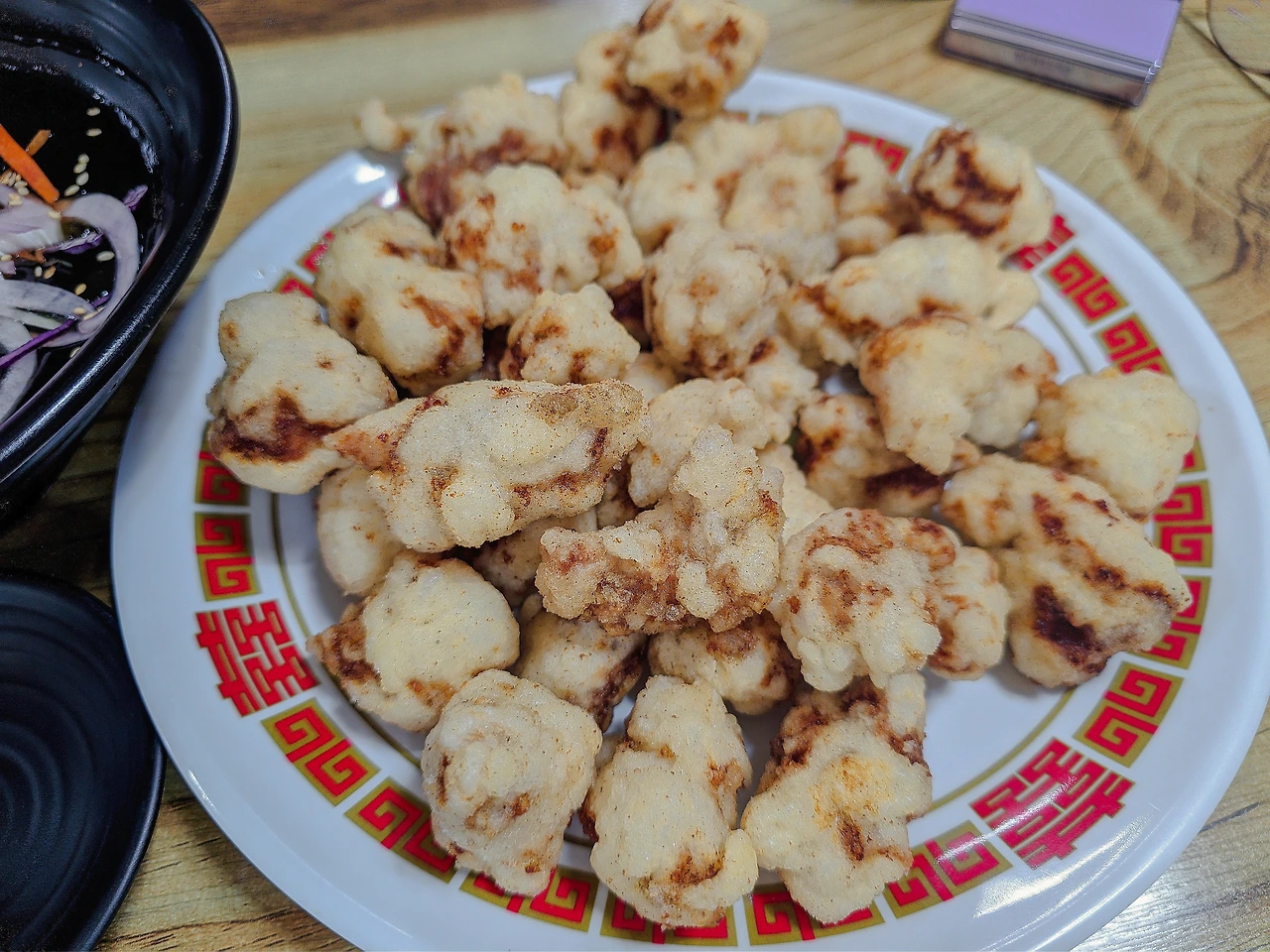 대다수 중국요리집에선 큼지막한 덩어리로 튀겨져 나오기 일쑤인 찹쌀탕수육도 먹기 좋게 한입 크기로 튀겨져 나와 이채를 띠었다. 주문과 동시에 튀겨낸 듯 아주 매우 많이 뜨거워서 서빙하는 분이 특별히 주의를 줄 정도였는데, '겉바속촉(겉은 바삭하고 속은 촉촉한)' 느낌의 바삭하면서도 쫄깃한 식감이 일품이었다. 상대적으로 덜 끈적거리면서 자극적이지 않은 소스맛은 그런 탕수육 풍미를 더해줬다.