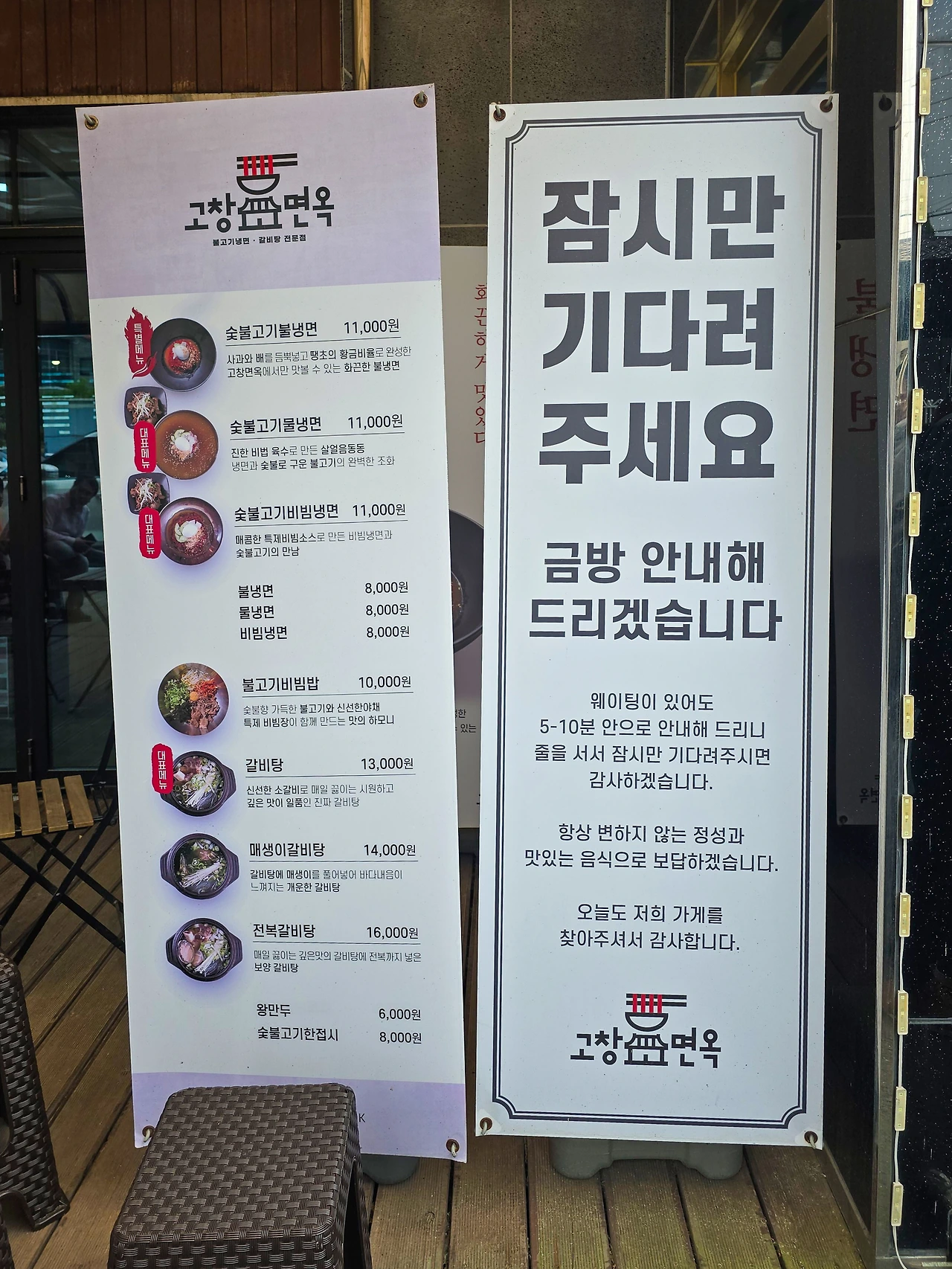 '또 먹고 싶은 음식을 만듭니다'라는 캐치프레이즈를 갖고 있다는 고창면옥은 쉬는날 없이 매일 오전 10시30분부터 저녁 8시까지 문을 연다. 오후 3시30분(토~일요일은 오후 4시)부터 5시까지는 브레이크 타임이며, 20~30대쯤 주차할 수 있는 전용주차장도 갖고 있다. 하지만 점심시간이나 주말에는 손님이 너~~~~어무 많아서 주차하기가 쉽지 않은 편인데, 다행히 차량통행이 그리 많지 않은 지역이라서 음식점 앞 도로 주변이나 골목길에 눈치껏 주차하면 된다.