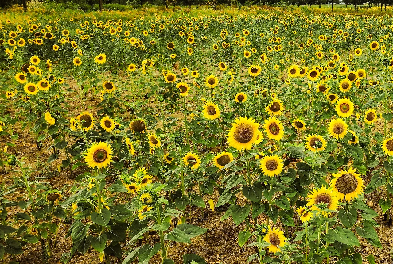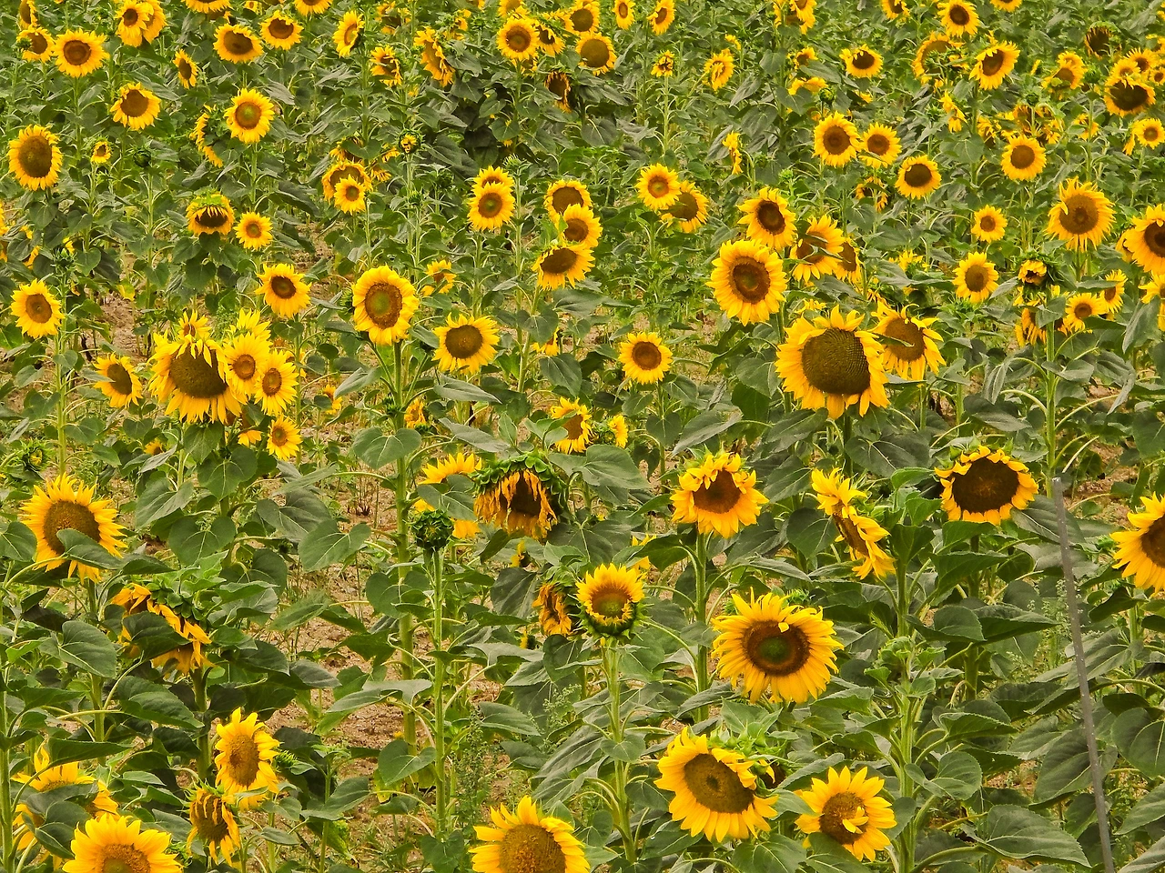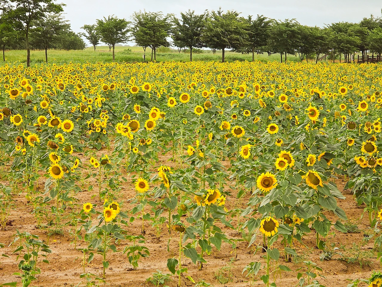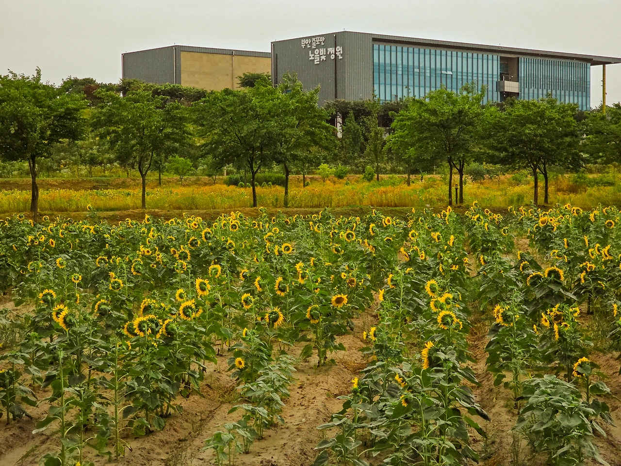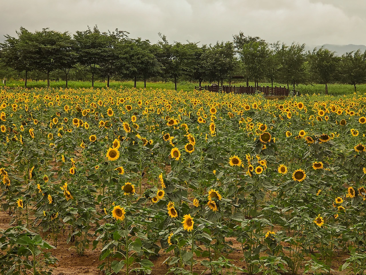 결과적으로 그 선택은 옳았다. 해바라기라는 꽃 특성상 해가 쨍쨍하면 더 한층 활기를 띠긴 했겠지만, 비 오는 날의 해바라기 역시 나쁘진 않았다. 오히려 빗물에 촉촉히 젖어 다소곳하게 피어있는 느낌도 색달랐고, 여름 한낮 땡볕 더위에 취약한 편인 아내와 내가 꽃구경을 하기에도 최적의 환경을 제공해줬다.