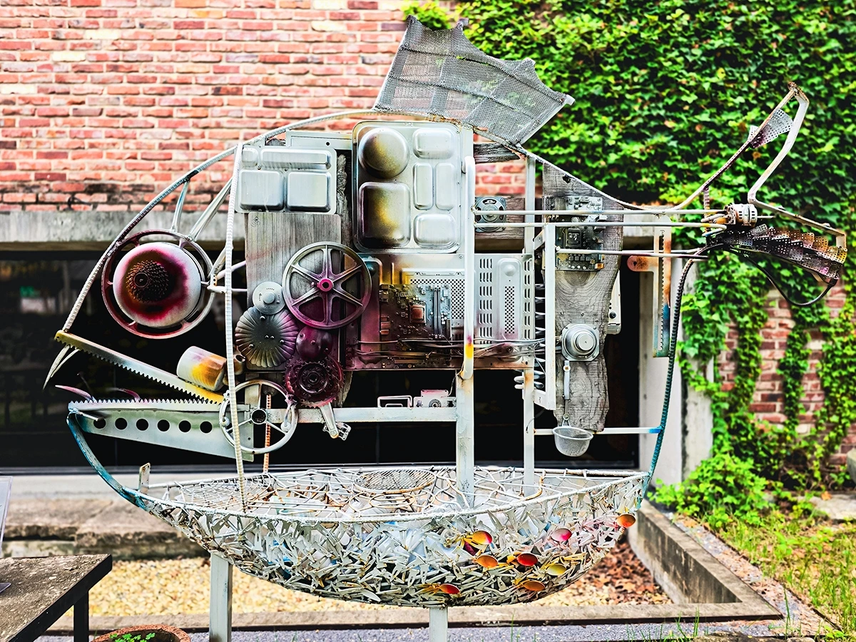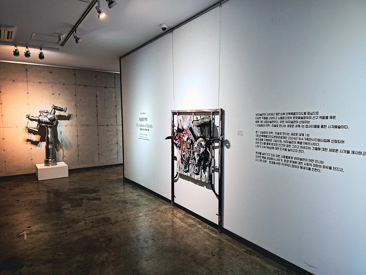 익산 예술의전당 옆 W미술관에서 버려진 자전거와 자동차 부품, 샤워호스 등 쓰레기나 다름없는 폐자재를 활용해 만든 미술작품들을 선보이는 뜻깊은 전시회가 열리고 있다. '되살림의 미학 : 미술로 만나는 새로운 세계' 전시회가 바로 그것이다.