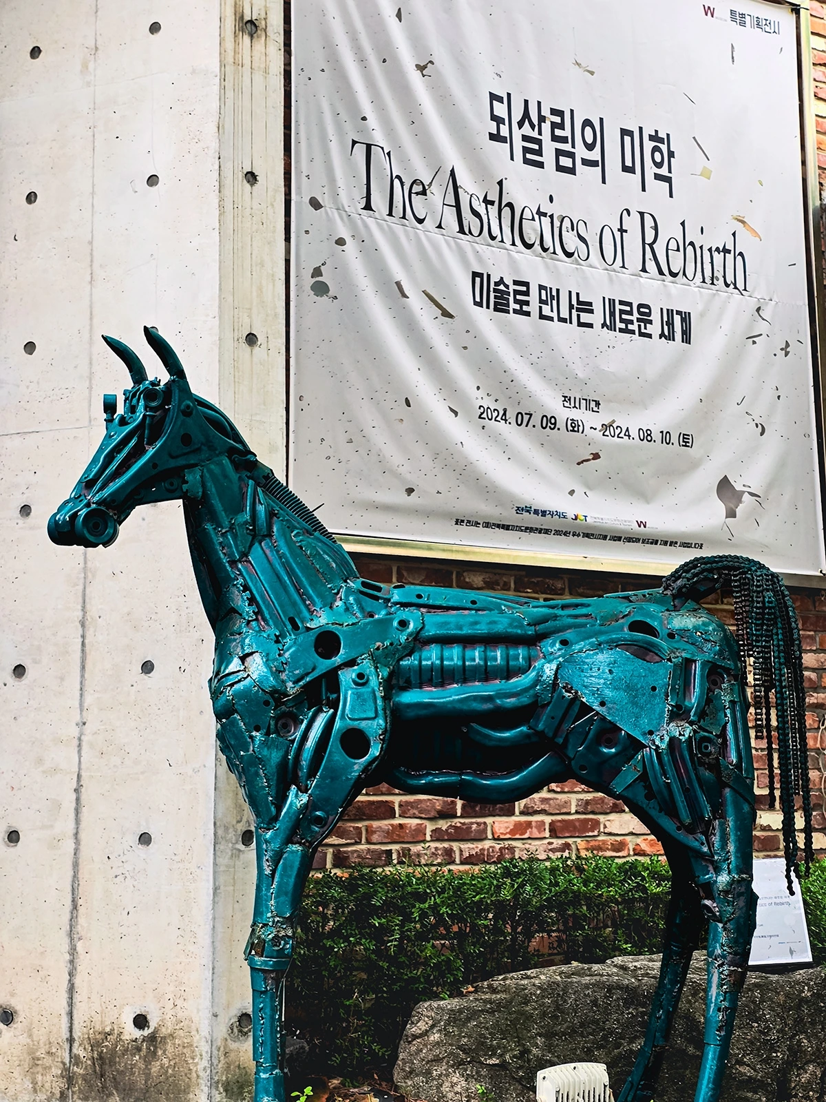 전북특별자치도가 주최하고 거시긴가 머시긴가가 주관하는 특별전시회라는 소개가 앞대가리에 붙긴 하는데 솔직히 그런 건 별로 관심없고, 내가 이 전시회에 눈길이 딱 꽂힌 이유는 폐자재를 활용했다는 이곳에 출품된 작품들이 아주 매우 많이 인상적이어서다.