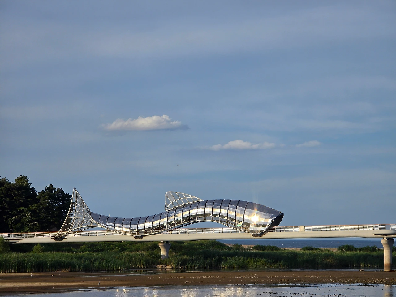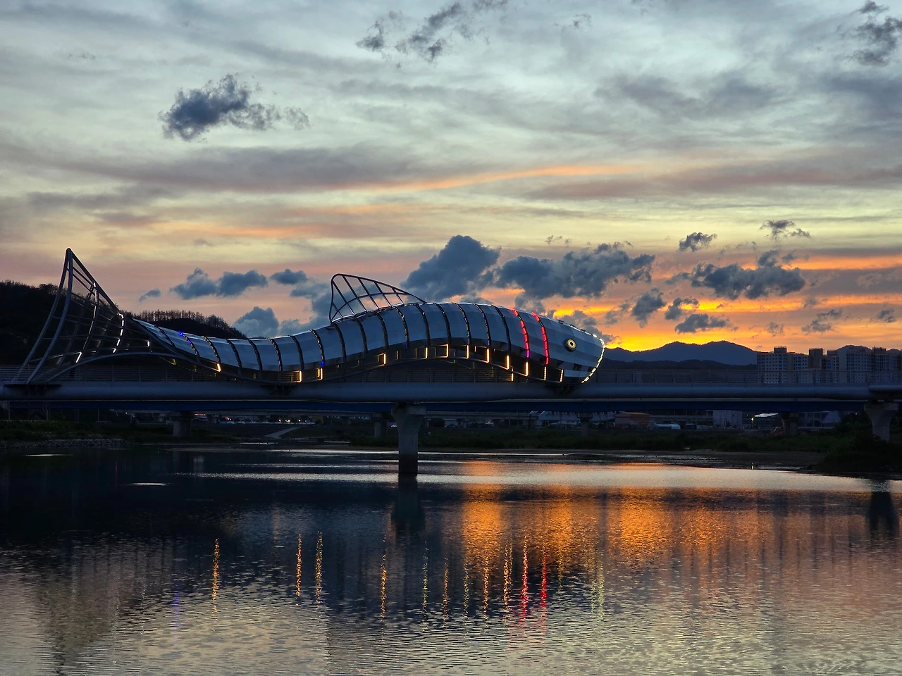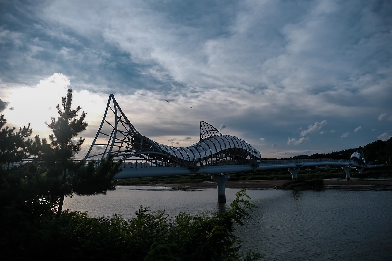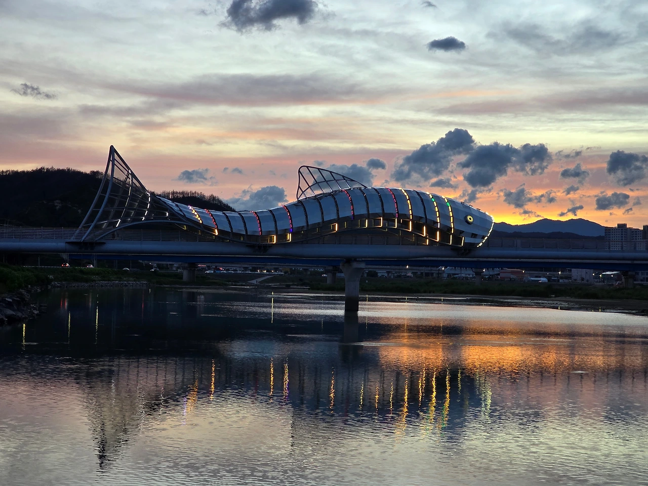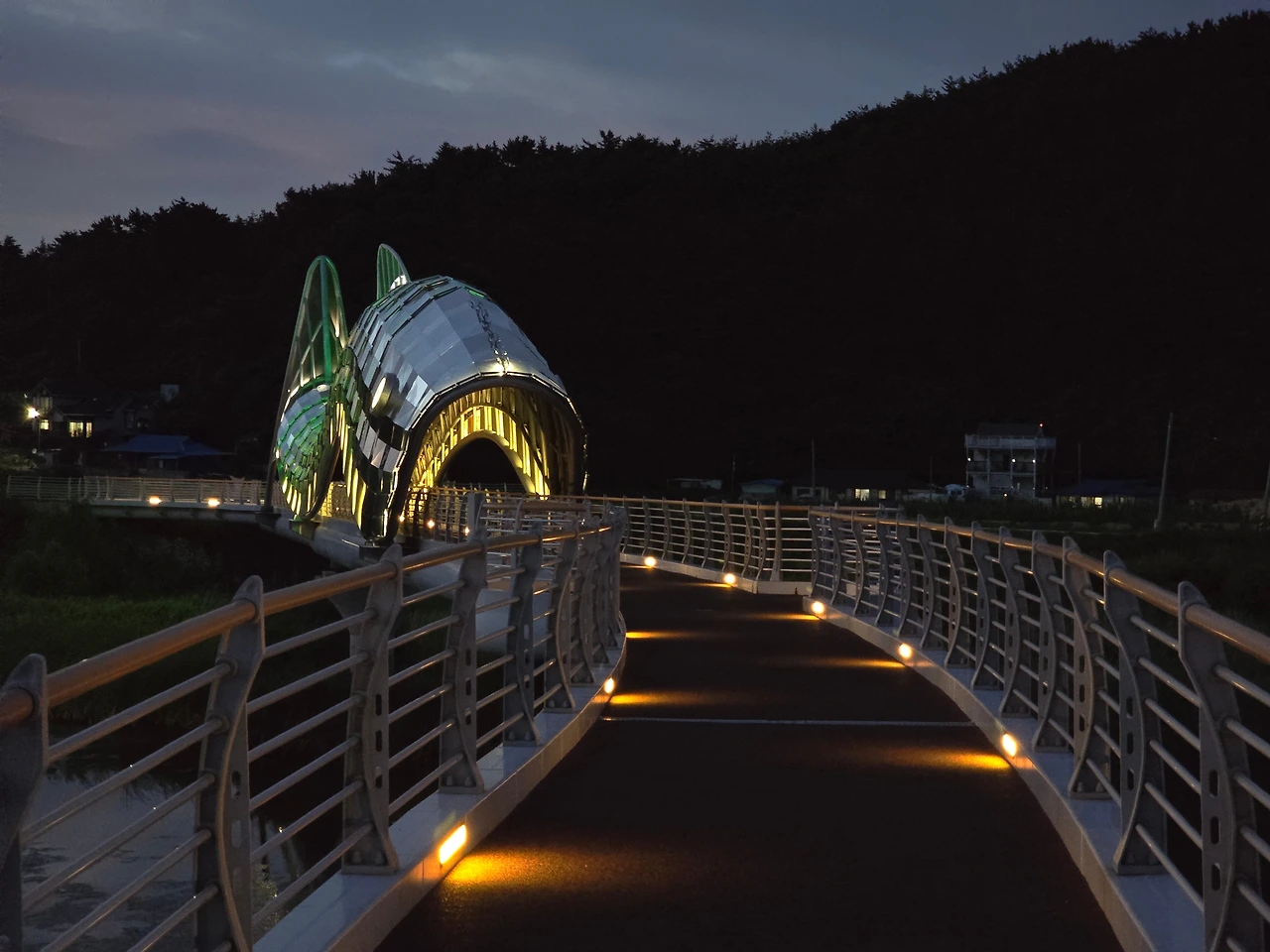 울진 은어다리가 뭐지 싶은 분들을 위해 여기서 참고로 설명을 덧붙이자면 울진 앞바다와 맞닿은 남대천 하구에 설치된 이 다리는 길이 243미터에 은어 두 마리가 서로 마주보는 모양새를 취하고 있다.