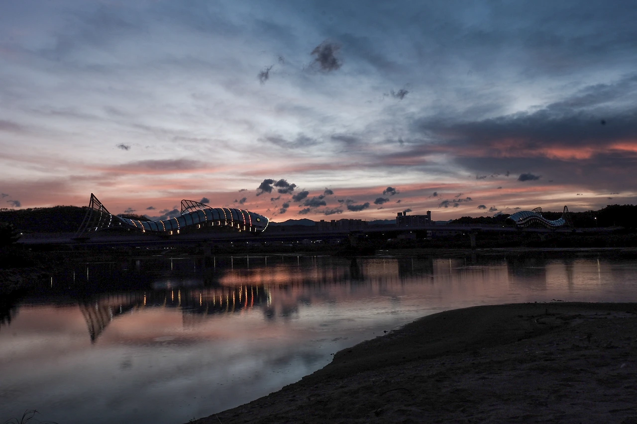 그런데 잠시 후 해가 서산으로 기울고, 하늘 가득히 노을빛이 물들기 시작하면서 분위기는 급반전하기 시작했다. 일견 을씨년스럽게까지 느껴졌던 은어다리는 어느덧 황금물결 속을 유유히 헤엄치는 물고기처럼 파닥거리며 깨어나기 시작했던 거다.