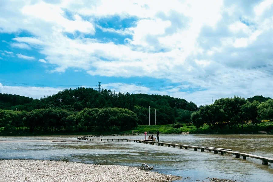 한 가지 주의할 건 외나무다리 폭이 그리 넓은 편은 아니기 때문에 자칫 한 발 삐긋하는 날이면 물에 빠질 염려가 있다는 거다. 다행히 하천 깊이가 그리 깊지 않아 평상시엔 신발과 바지를 좀 적시는 정도 가벼운 사고로 그칠 수 있지만, 비가 많이 내린 뒤엔 물 흐르는 속도가 제법 눈을 어질하게 만들 정도인 데다가 잘못 휩쓸리면 다칠 위험성도 있는 만큼 각별히 조심할 필요가 있다.