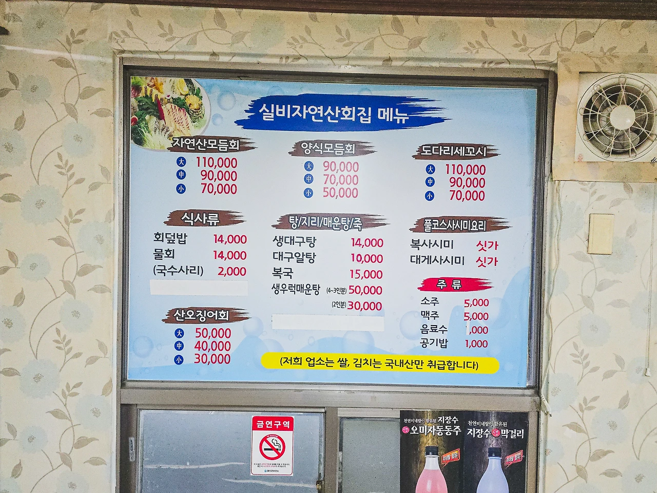 울진 여행을 계획하면서 내가 북면하고도 부구리라는 작은 동네에 있는 '실비자연산횟집'을 가족들과 함께 밥 먹으러 갈 맛집 후보에 넣은 건 전적으로 우연히 발견한 한 SNS 맛집 포스팅 때문이었다. 포스팅 내용으로 봤을 때 회를 많이 좋아하는 분으로 판단됐는데, 실비자연산횟집이란 음식점이 그녀와 그녀 부모님이 "지난 20년 간 꾸준히 단골로 드나들고 있는 집"이며 "최근에도 부모님을 모시고 다녀왔다"는 후기가 그것이었다.