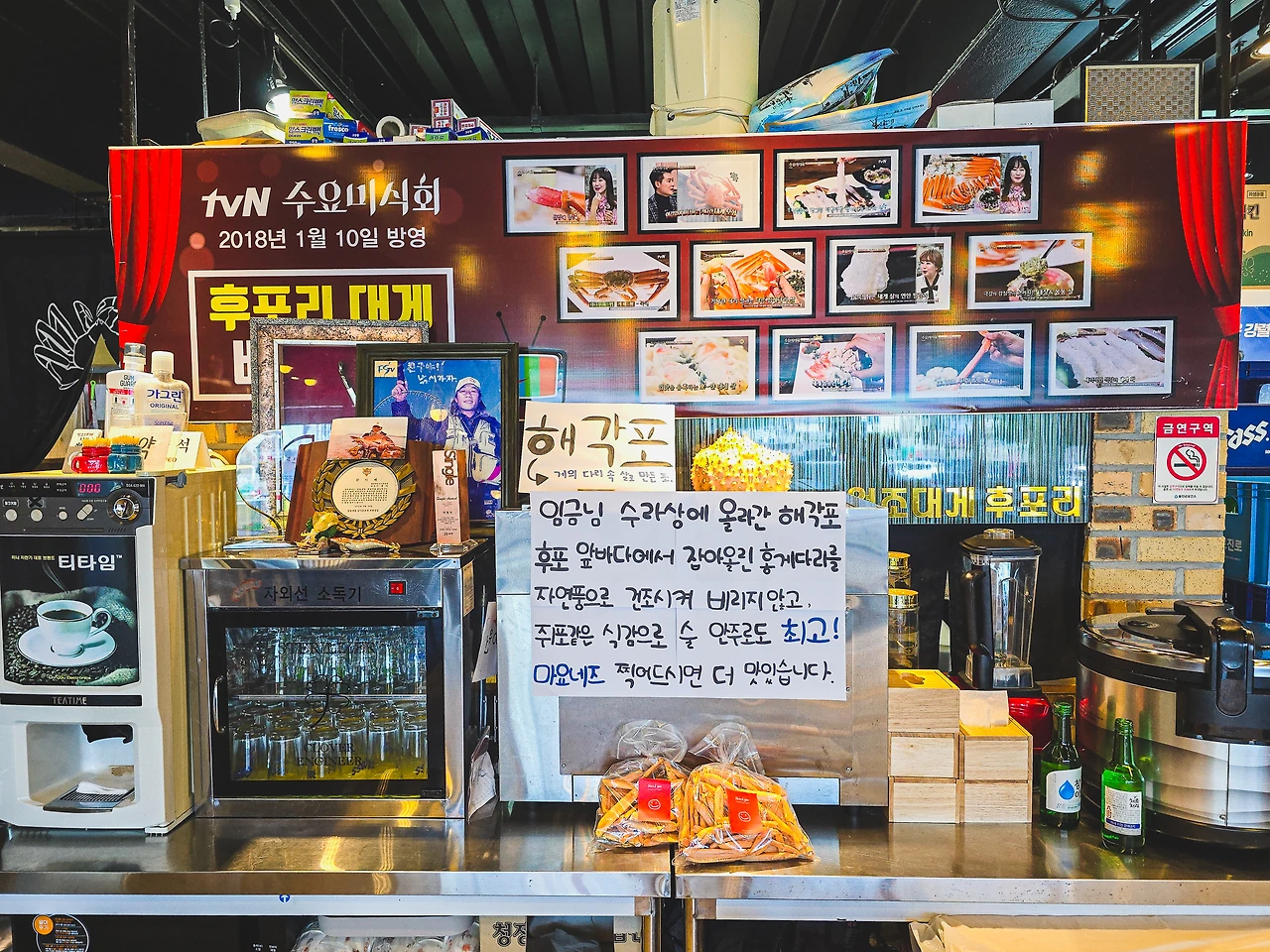 무려 3대에 걸쳐 53년 간 이어져 내려오는 맛집이라고 했다. 수요미식회 등 수많은 방송국놈들이 앞다퉈 찾아와선 경쟁적으로 울진대게 맛집이라 '게거품'을 문 곳이라고 했고, '살수율'인가 뭐시기인가가 높아 살이 꽉 찬 실속있는 대게들을 영접할 수 있는 걸로 정평나 있는 맛집이라고도 했다. 울진대게 전문점 원조대게후포리 얘기다.