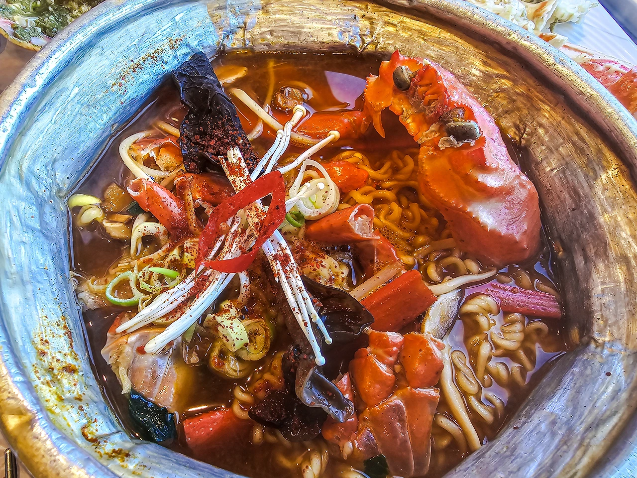 대게를 먹을 때 영혼의 단짝처럼 붙어다니는, 그래서 맛 안 보고 넘어가면 아주 매우 많이 서운한 게장볶음밥도 재료가 좋아서 그런가 '존맛'이었고, 전날 마신 술 해장도 할 겸 얼큰하고 시원한 국물이 땡겨 주문한 홍게라면도 일반 라면이라면 절대 내기 힘든 깊은 국물맛을 선사함으로써 먹는 즐거움을 만끽할 수 있도록 만들어줬다.