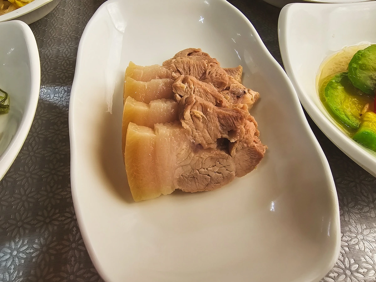 밑반찬은 밑반찬인데 왠지 미끼인 듯 미끼 아닌 미끼 같은 느낌이 드는 수육은 만경식당을 찾는 단골손님들이 가장 좋아하는 '존맛' 가운데 하나. 홍어찌개 단일메뉴라 해도 좋을 만큼 메뉴가 단촐하기 그지없는 이 집의 거의 유일한 추가메뉴인 이 수육이란 녀석은 한 점 집어먹는 순간 너무 부드럽고 씹히는 맛이 일품이어서 '이거이거 밑반찬이 아니구 미끼 아냣?' 하는 생각이 절로 들 지경이다.