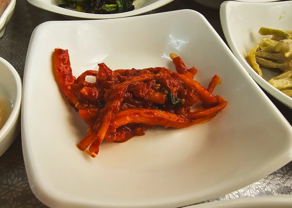 천려일실 격으로 다만 한 가지 아쉬웠던 건 손님들 테이블에 음식을 세팅하는 서빙방식이었다. 한정된 인력으로 밀어닥치는 많은 손님들을 상대하려다 보니 나름 노하우랍시고 그러는 듯 싶었는데, 밑반찬들이 가득 담긴 쟁반째 손님 테이블에 올려놓는 게 그것이었다.