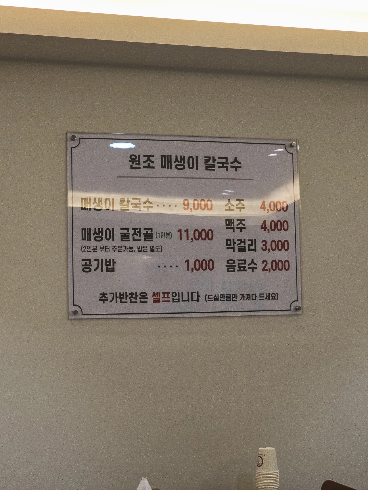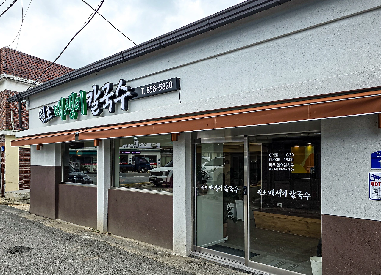 특히나 우리 가족 모두 매생이도 좋아하고 칼국수도 좋아하는 터라 딱 취향저격 제대로였다. 그래서 두 번 생각할 것도 없이 여행 첫날 첫 끼이자 중간기착지로 이곳을 찜해버렸고, 기대에 부푼 가슴으로 콧노래를 부르며 찾아가봤다.