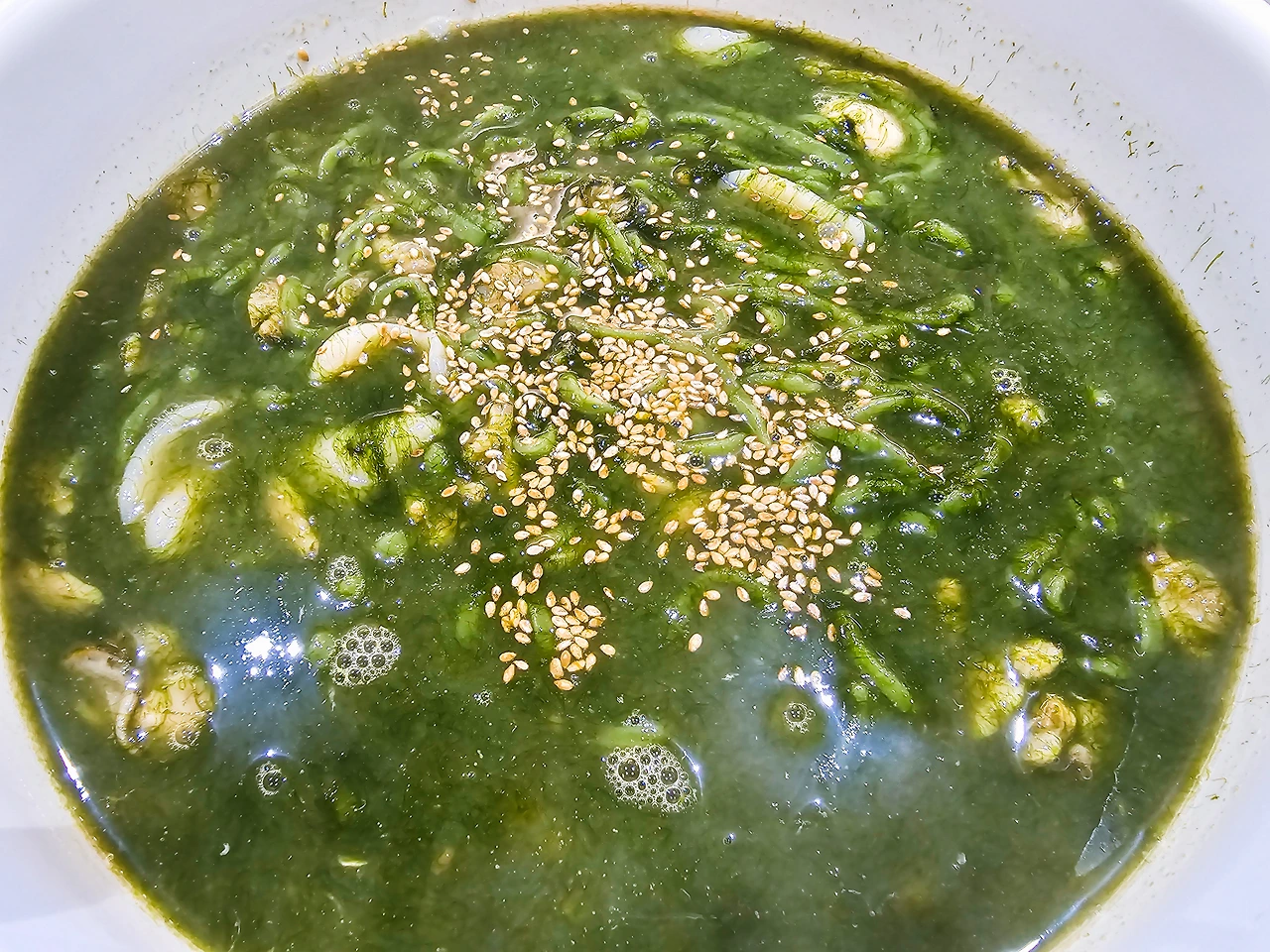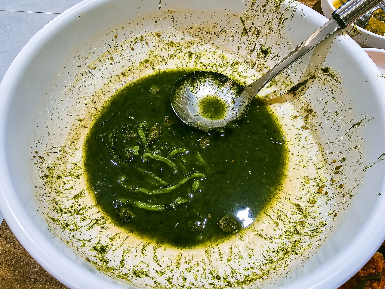 먼저 칼국수의 경우 매생이를 주재료로 삼은 음식답게 한 입 먹는 순간 깊은 바다의 맛 위로 칼국수 특유의 감칠맛, 여기 더해 이 식당 비법이 가미된 기분좋게 매운맛이 어우러져 뱃 속으로 흘러드는 느낌이었고, 굴전골의 경우 매생이 맛 더하기 굴의 깊은 풍미까지 더해져 더 한층 진한 바다의 맛과 향기가 우러나는 느낌이었다. 녹색녹색한 음식 비주얼로부터 뿜어져 나오는 건강해지는 느낌과 찰진 조연 역할을 120% 소화해내는 김치 등 밑반찬류 역시 먹는 즐거움을 더더 더해줬다는 건 굳이 강조하지 않겠다.