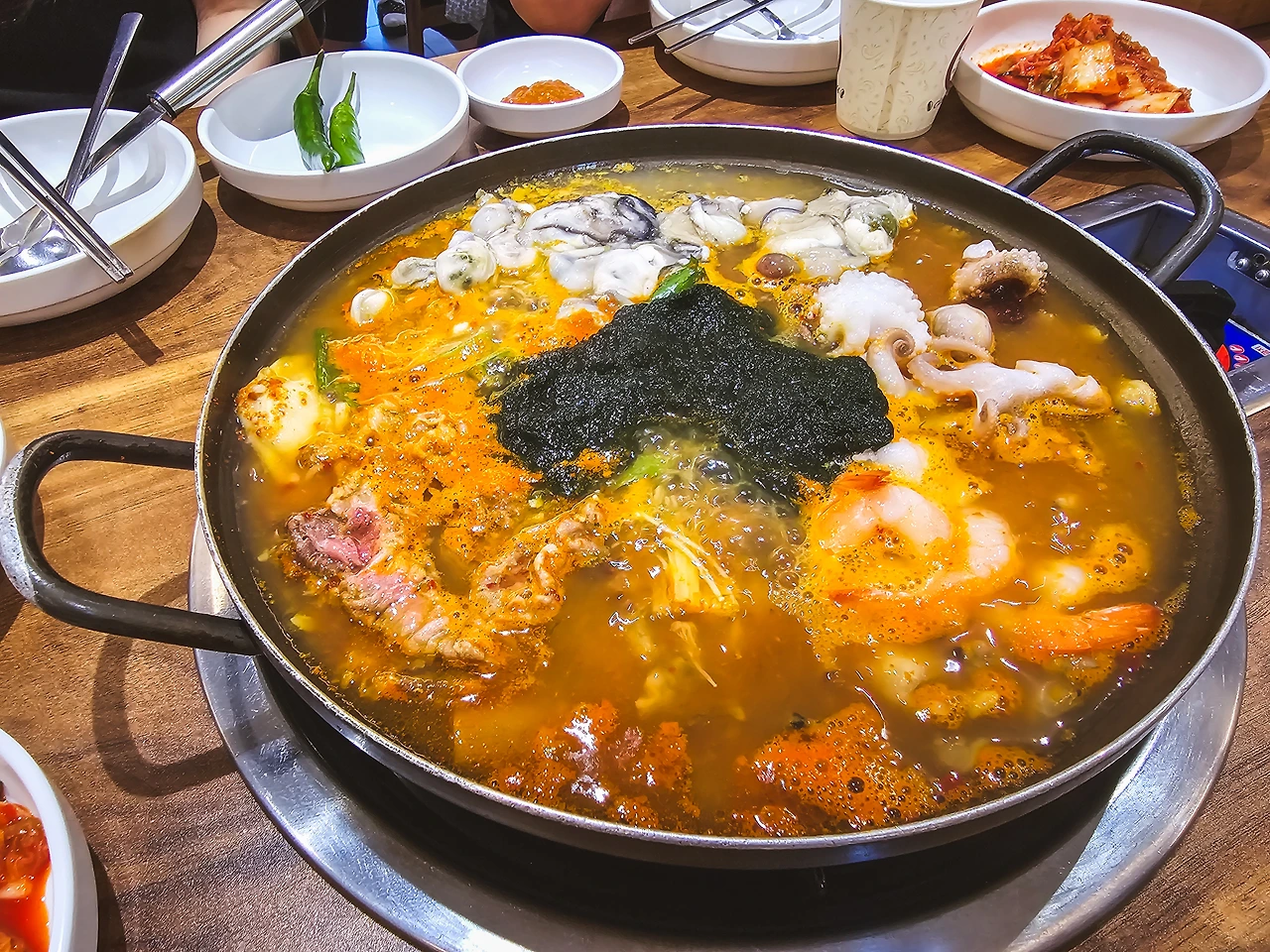 이 장면을 기억하는 사람들 중엔 '맞앗, 매생이는 겨울 제 철에 먹어야 맛있는 거!'라는 생각을 가진 이가 많을 건데, 내 미각이 식객 성찬이보단 많이 부족해서 그런 지는 몰라도 안동원조매생이칼국수에서 칼국수와 굴전골을 먹어본 결과 7~8월에 먹는 냉동 매생이도 충분히 맛이 있었다는 얘기를 덧붙이고 싶었다.