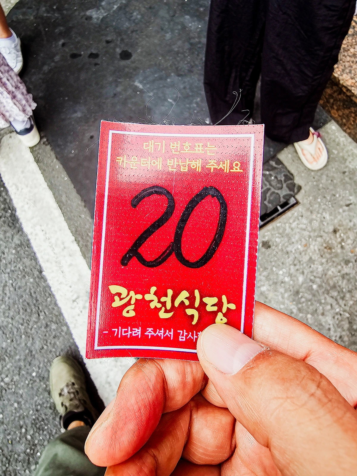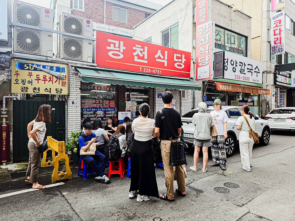 그렇게 찾아간 대전 광천식당은 과연 소문난 맛집답게 문전성시를 이루고 있었다. 딴엔 줄서기 없이 편안하게 밥을 먹을 요량으로 오픈 시간보다 10여분이나 일찍 그곳을 찾았지만, 대기번호 20번이라는 숫자가 증명하듯이 식당 앞엔 이미 열아홉 팀이나 되는 선객들이 바글거리고 있었다.