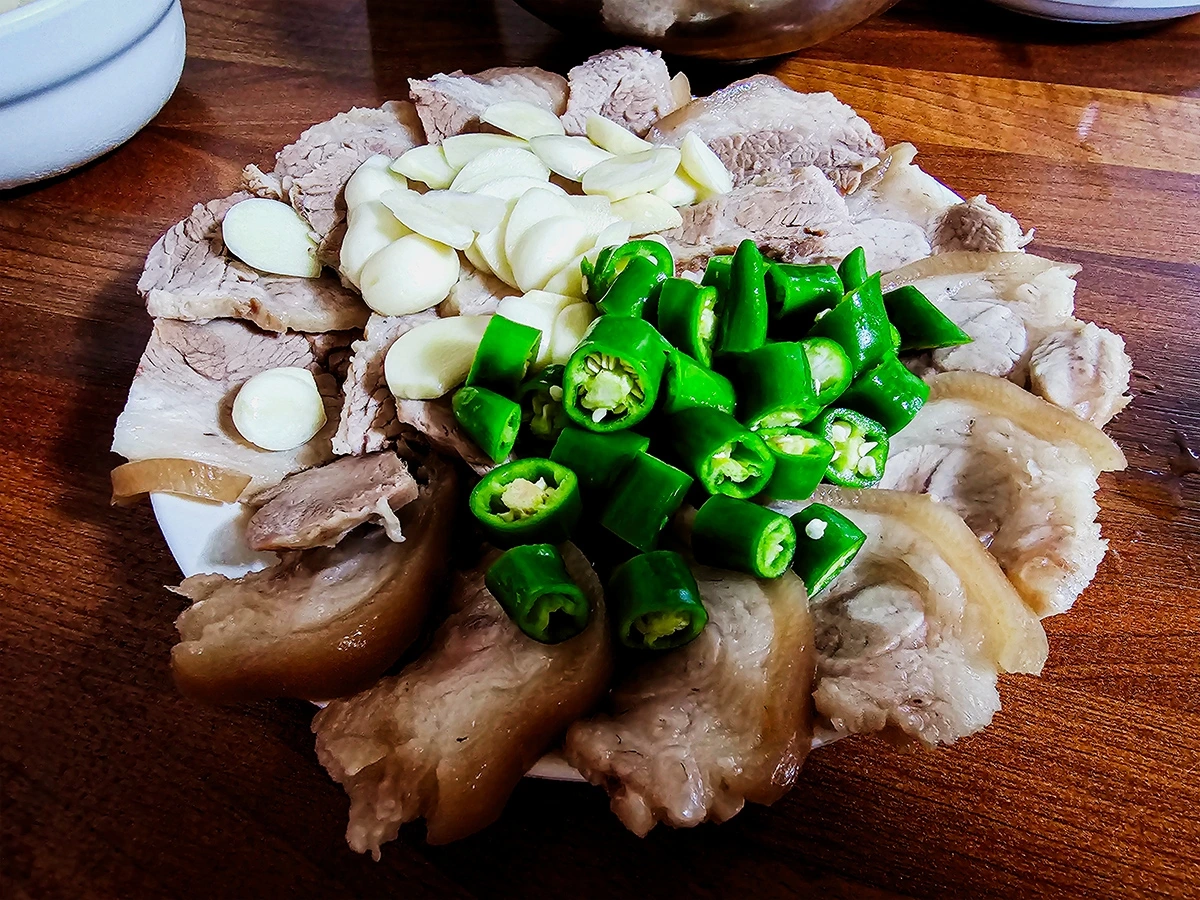 낯선 대전 도심을 가로질러 일방통행로 넘쳐나는 좁은 골목길을 헤매고 고생한 끝에 단맛을 봤다는 의미다. 채식주의자까진 아니로되 고기류를 그리 즐겨먹진 않는 편이어서 고기의 단맛이란 걸 느껴볼 기회가 적었던 탓도 물론 있겠지만, 오십 몇 년 간 살아오는 과정에서 수육이 달게 느껴진 건 맹세코 이때가 처음이었다. 그동안은 고기가 달다든가, 입 안에서 살살 녹는다는 말을 전혀 이해 못하고 살아왔는데, 정말 그럴 수도 있겠구나 하는 생각이 처음으로 들었을 정도.