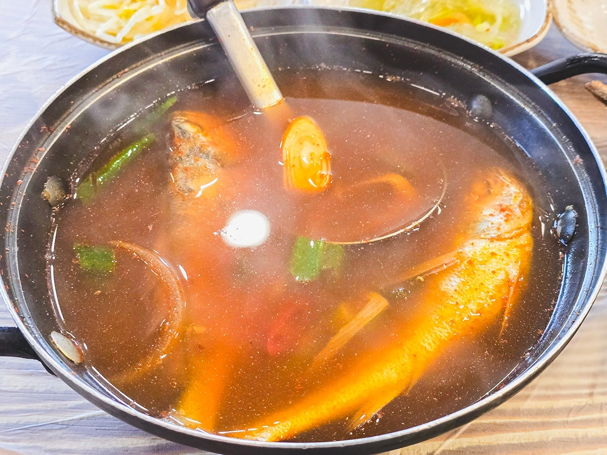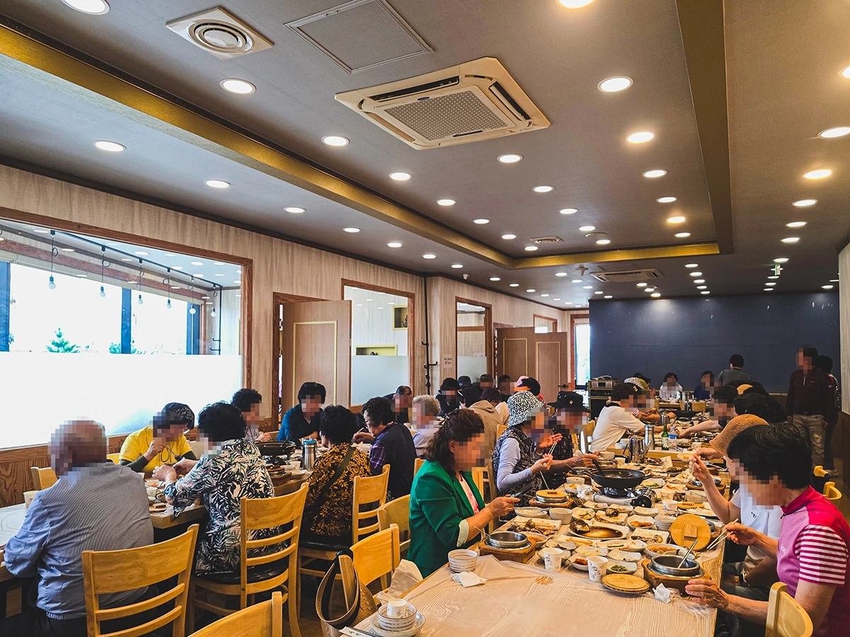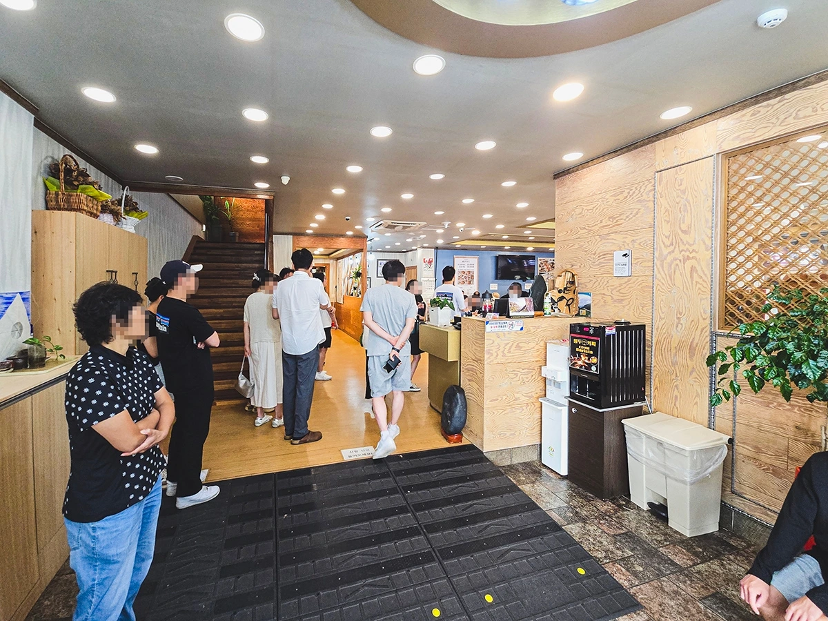 나같은 생각을 한 여행객들이 꽤 많았던 듯 영광 법성포 풍성한집은 입구부터 웨이팅 행렬이 길게 늘어서 있었다. 내 딴엔 제법 잔머리를 굴린답시고 피크시간을 살짝 피해 오후 1시쯤 방문을 했음에도 불갑사 꽃무릇 시즌인 데다가 토요일이라는 요일적 특수까지 겹쳐 2층까지 있는 음식점 테이블이 꽉 찬 것은 기본이요, 출입문 안팎에 수십 명이나 되는 손님들이 줄을 늘어서 있었다.