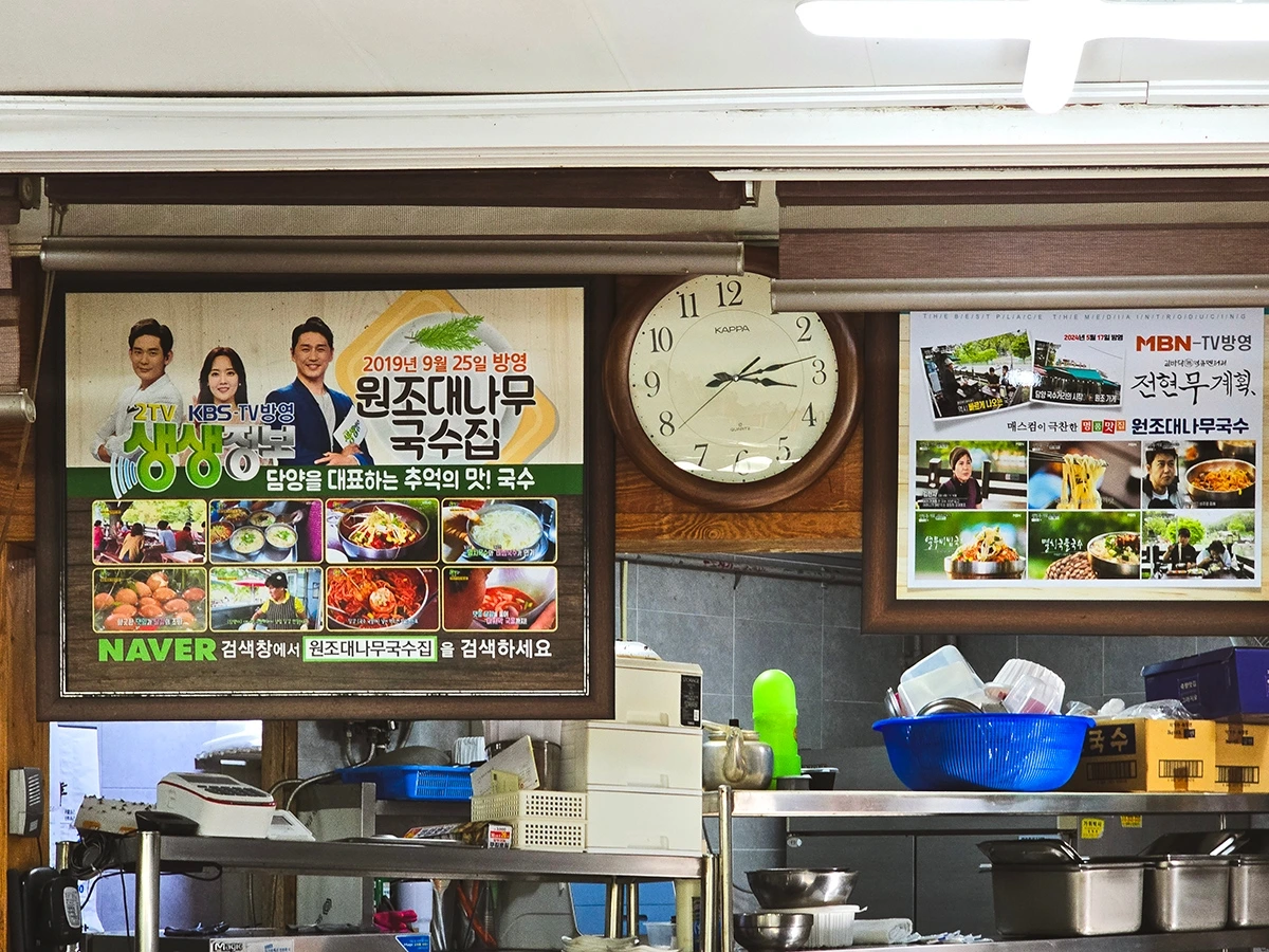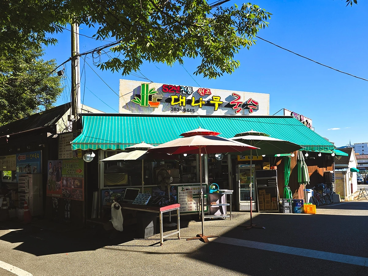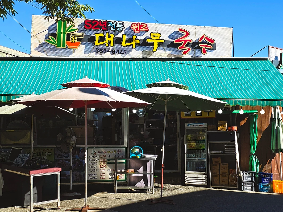 그래서 얼마 전 담양 여행길에 다시 한 번 찾아가봤다. 앞서 갔던 집은 아무래도 좀 아니다 싶어 인터넷 검색 끝에 52년 전통 맛집이라는 원조대나무국수집을 선택했고, 그나마 미심쩍은 마음에 다른 떡갈비 맛집을 메인으로 삼은 뒤 간식 코스 정도로 가볍게 맛이나 한 번 보자는 마음으로 찾아갔다.