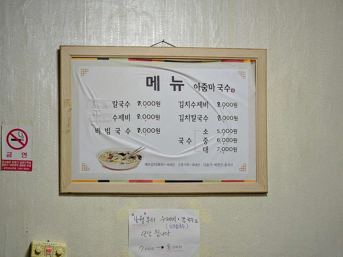 봉동 아줌마국수는 오전 11시부터 오후 4시(5시 또는 7시라는 썰도 있다)까지 영업을 하며, 매주 일요일은 정기휴무다. 바쁘게 일하는 직원들 붙잡고 뭘 물어보는 걸 싫어하는 성격이라 직접 물어보진 못했지만, 일요일에 갑자기 김치수제비가 땡겨서 찾아갔다가 허탕친 경험이 있으니 아마도 휴무일이 일요일인 건 맞을 거다. 헛걸음하지 않는 가장 좋은 방법은 방문 전 전화(063-261-2534)로 직접 문의해 보는 것.