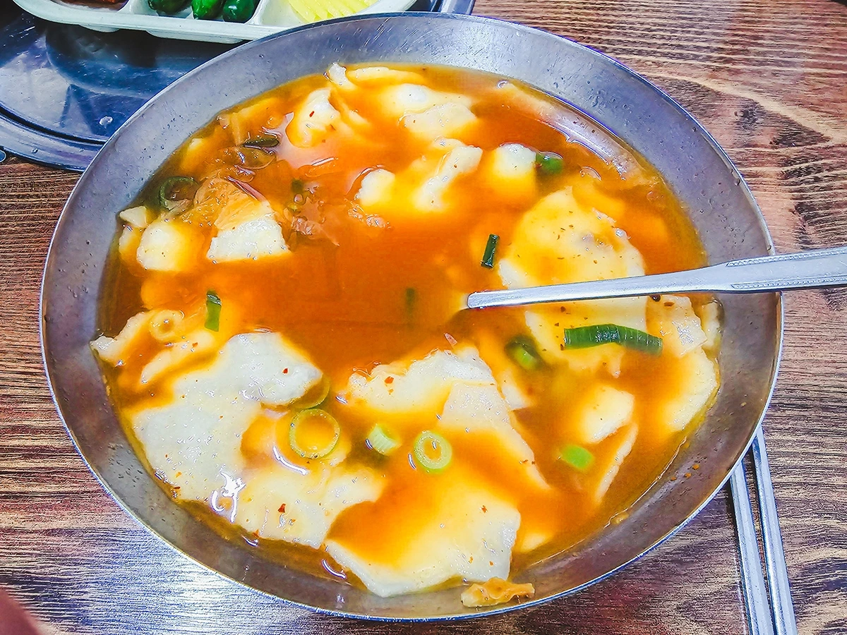 지난 2017년 SBS 인기프로그램 '생활의 달인'에서 비빔국수 달인으로 선정되기도 한 여사장님이 20년 넘게 운영 중인 봉동 아줌마국수에서 아내와 내 입맛을 사로잡은 시그니처메뉴는 얼큰하면서도 칼칼한 육수 국물맛이 일품인 김치수제비.