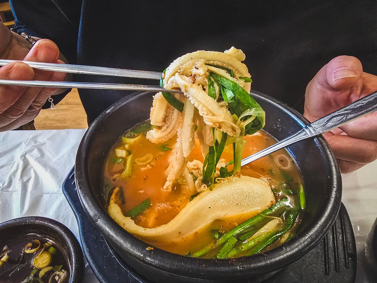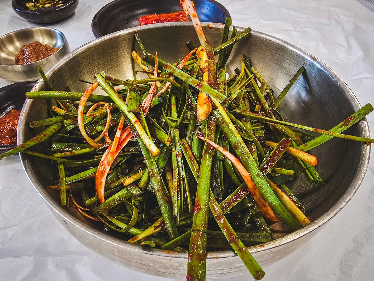 이 집 곰탕이 특히 좋았던 건 경상도 사투리로는 정구지, 전라도 사투리로는 솔이라 불리는 부추 무침과의 기가 막힌 꿀조합 때문이었다. 소금과 후추 간만으로는 어딘가 좀 아쉽다 싶어 다른 단골 손님들 먹는 걸 곁눈질해 부추 무침을 곰탕에 한번 집어넣어 봤는데, 그 조합이 더해지는 순간 세상에나 마상에나 하는 감탄사가 절로 입 밖으로 튀어나왔다. 다른 어느 곰탕집에서도 맛본 적이 없는 '대존맛' 입에 착착 감기는 국물맛이 탄생했던 거다.