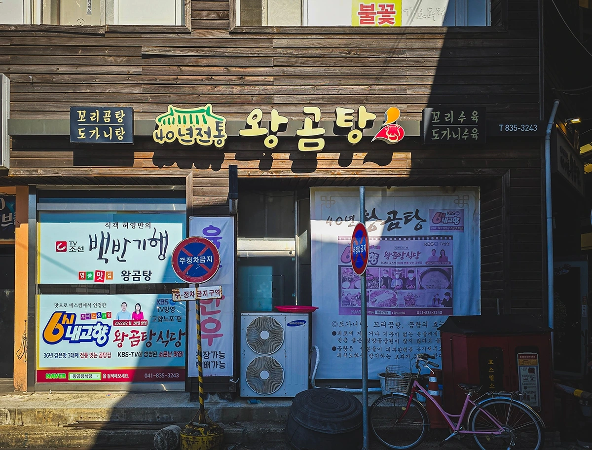 부여 중앙시장 안 골목길에 자리잡고 있는 왕곰탕은 '왕'이라는 수식어가 무색하지 않을 만큼 왕 맛있는 국물맛을 자랑하는 곰탕 맛집이다. 허영만 백반기행에도 나왔었다는 소개를 참조해 반신반의 하는 마음으로(만화 식객을 그린 허영만 화백은 믿지만 방송국 놈들은 별로 안 믿는 편이다) 찾아갔는데, 결론부터 얘기하자면 인생 맛집이라 해도 좋을 만한 곰탕 '찐맛집'임을 인정할 수밖에 없는 곳이었다.