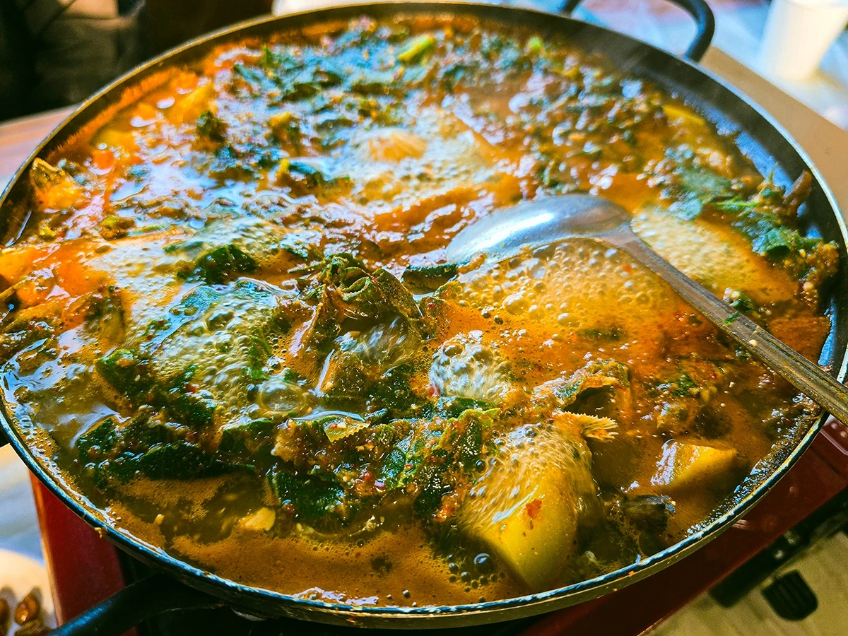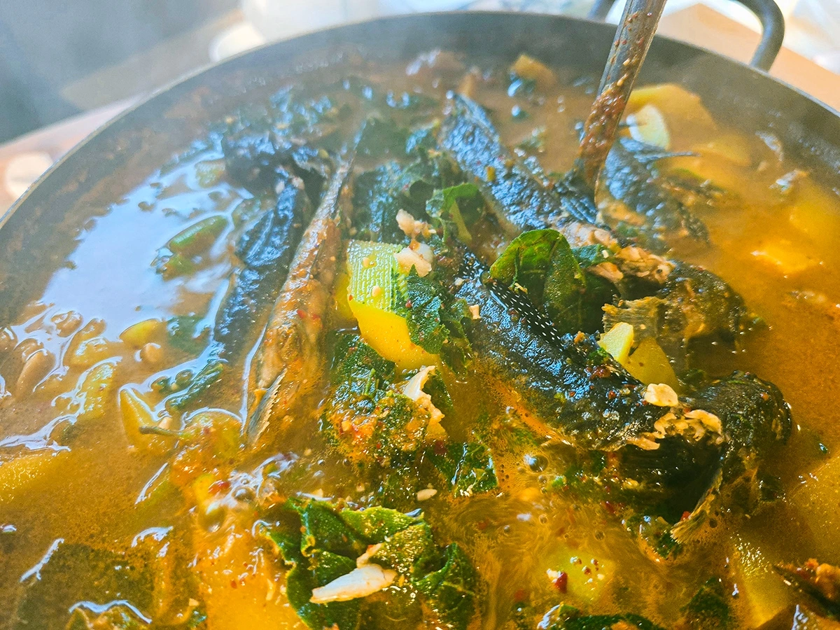 덕분에 우리가 식당 밖 웨이팅을 하는 과정에서 미리 주문해 둔 짱뚱어전골은 그로부터 다시 40여 분을 기다린 뒤에야 영접할 수 있었다. 기나 긴 기다림에 한 번, 과부하가 걸리다 못해 다소 신경질적으로 변한 직원 태도에 또 한 번 화가 나있던 우리는 "이놈의 짱뚱어전골 맛만 없어봐랏!" 하며 잔뜩 벼르고 있던 중이었는데, 다행인지 불행인지 맛있었다. 조금만 꼬투리가 잡히면 맛이가 없다며, 이까짓게 무슨 맛집이냐며 툴툴거릴 준비가 완벽히 돼 있었건만 맛이가 있어부렀다.