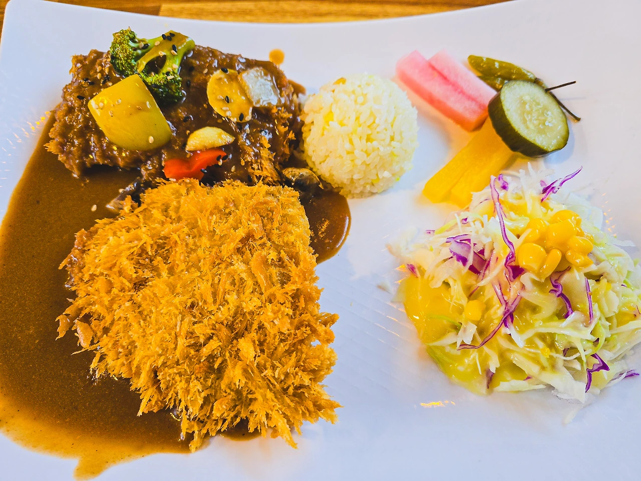 한 칼 한 칼 썰 때마다 그 안에서 듬뿍듬뿍 흘러나오는 쫀득쫀득한 치즈도 존맛에 존맛을 더해 대존맛을 선사해 줬다. 식탁 한 쪽에 놓인 가게 소개를 보니 자연 블럭치즈인가 머시기를 사용한다고 하는데, 평소 치즈를 즐겨먹진 않는 편이라 그게 뭔지는 잘 몰라도 바삭한 돈가스와 함께 먹으니 바삭함을 접착제로 살짝살짝 붙잡아놓은 듯한 쫀득한 식감이 입 안을 즐겁게 해줬다.