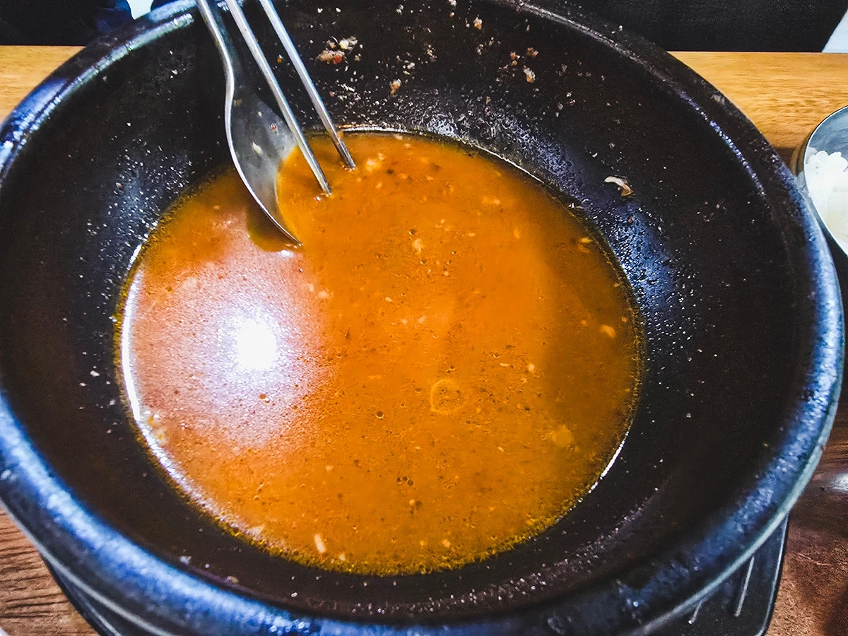 그 맛이 어찌나 좋던지 아내와 내 최애 청국장 맛집인 전주 옴팡집을 떠올리게 만들 지경이었다. 월요일부터 금요일까지 평일 오전 11시부터 오후 1~2시까지 밖엔 문을 안 열어 나처럼 좀 먼거리를 오가야 하는 직장인들은 그 문턱 넘기가 쉽지 읺은 콧대 높은 맛집에 버금가는 청국장 맛을 예기치 못한 곳에서 마주해 '심봤닷!' 하는 생각마저 들었을 정도다.