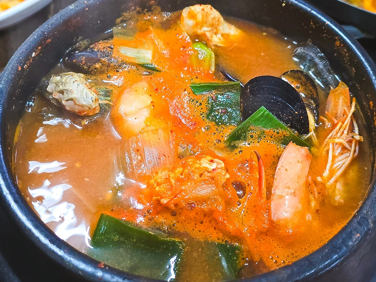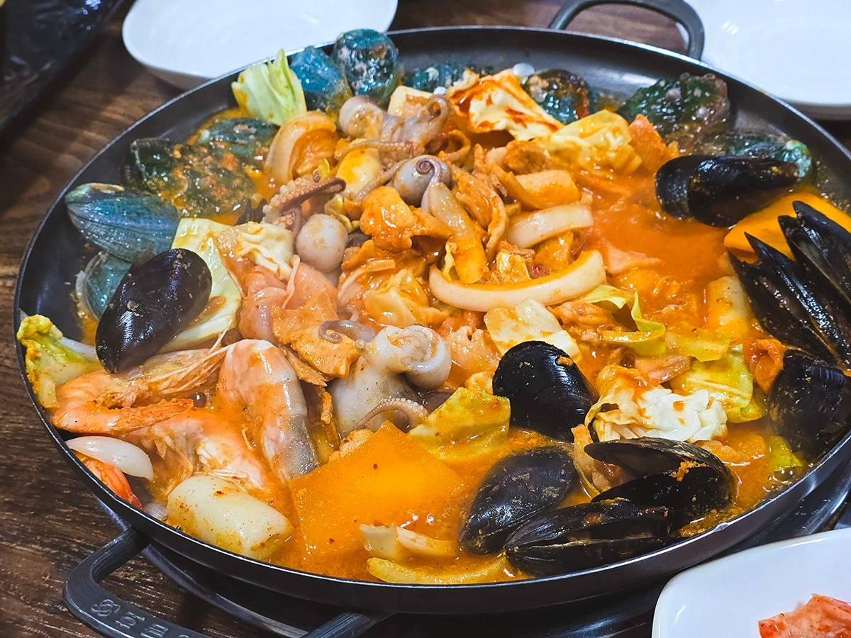 제주명가두루치기에서 두 번째로 내가 놀란 포인트는 다른 곳에선 쉽게 맛보기 힘든 독특하면서도 깊은 국물맛이었다. 해물된장뚝배기는 물론이요, 일반적인 음식점들의 경우 매콤한 맛이 대부분인 두루치기조차 매콤보다는 구수하다는 느낌이 드는 깊은 국물맛을 선보였기 때문이다. 그 위에 전복과 홍합, 쭈꾸미, 새우 등 해산물들과 무말랭이, 떡 등 온갖 재료를 세계 2차대전 때 히로시마 폭격하듯 때려 넣었으니 맛이가 없을 수가 없었다.