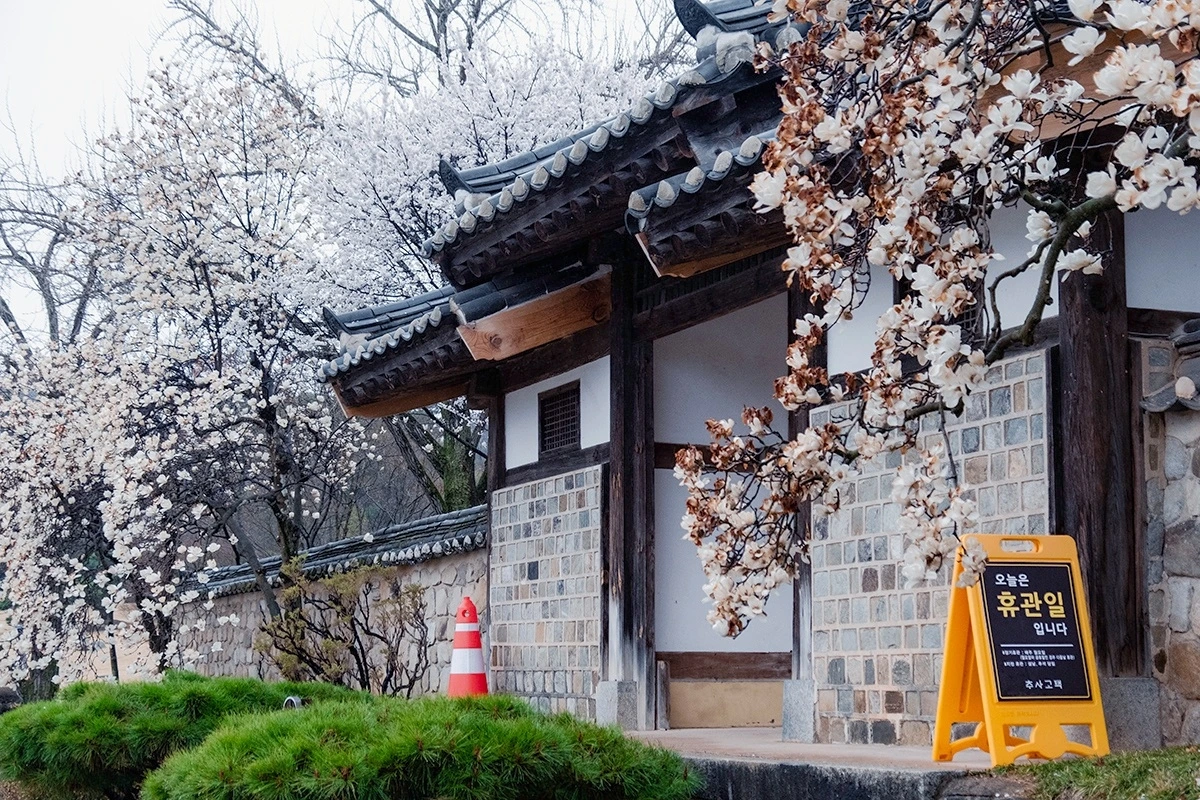 이 맘 때 추사고택을 찾으면 가장 먼저 눈에 띄는 건 대문 좌우로 흐드러지게 피어난 벚꽃과 매화, 목련 등 예쁘고 생명력 넘치는 봄꽃들. 마치 깔맞춤(이 단어가 낯선 분들을 위해 부연설명하자면 옷이나 악세사리 등의 색상을 비슷한 계열로 맞추어 코디하는 형태)이라도 한 것처럼 꽃 종류는 다르되 온통 하얀빛으로 대문 주변을 장식한 모습이 한옥 고택과 어우러져 남다른 아름다움을 자아낸다.